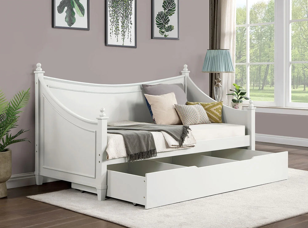 Transitional Solid Wood White Twin Daybed Frame Mattress Ready - Omega Lifestyles