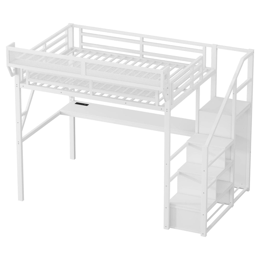 Full Metal Full Size Loft Bed With Desk Charging Station