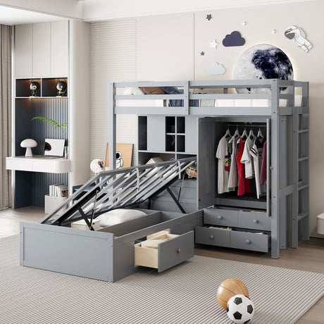 Full Wood Loft Bed With Built-In Wardrobe Desk