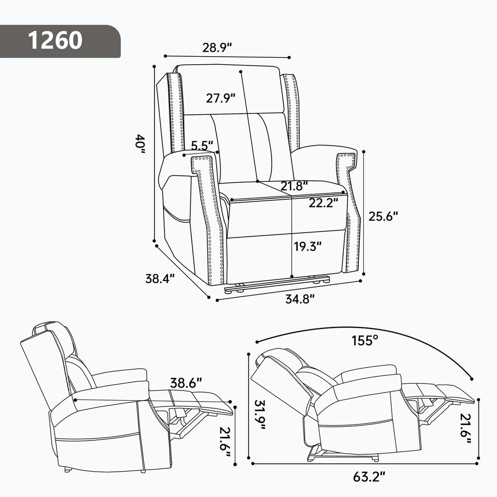 • 155° Manual Recline: Smooth handle-operated reclining for near-flat lounging.