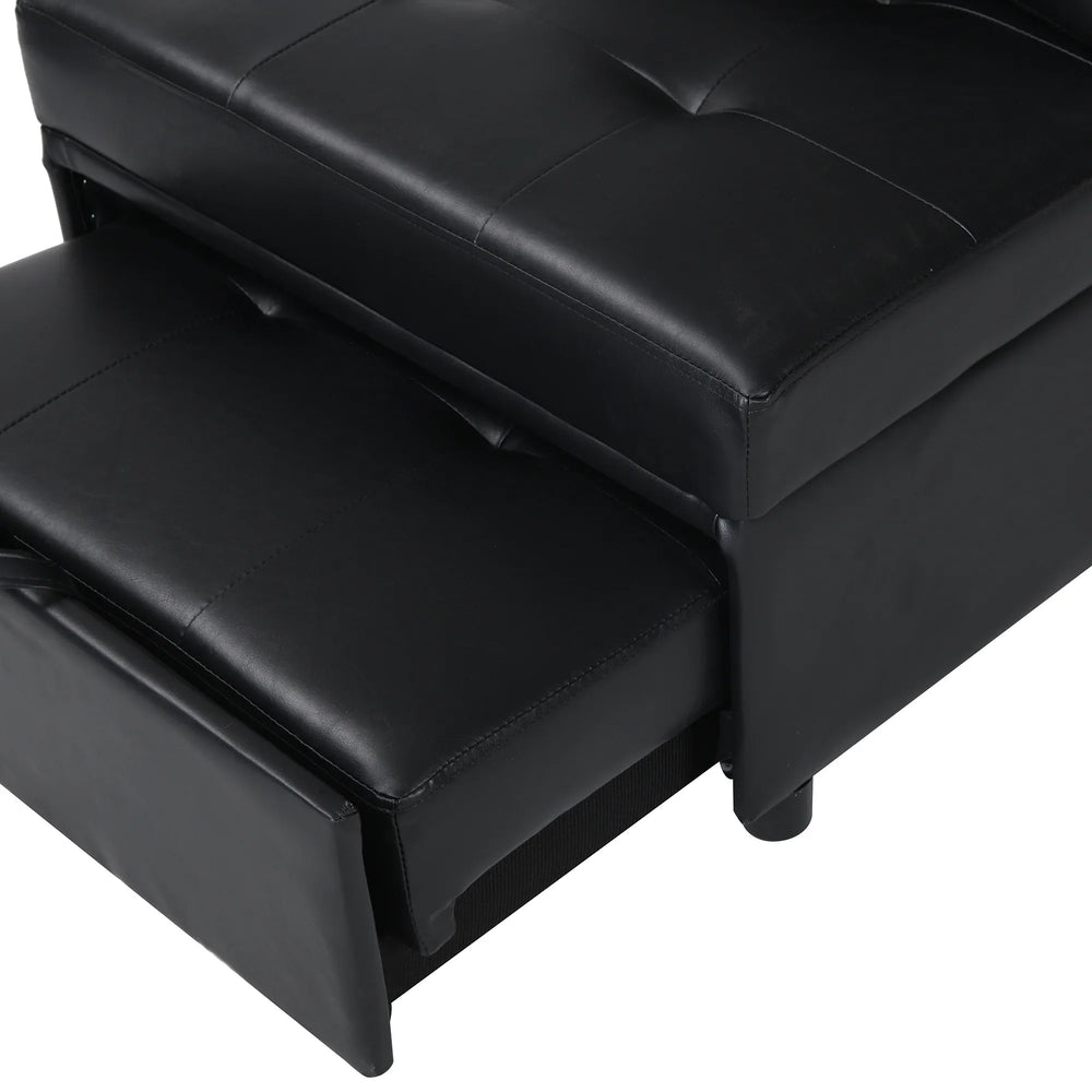 Black Leather Folding Multifunctional Space-Saving Ottoman Sofa Bed