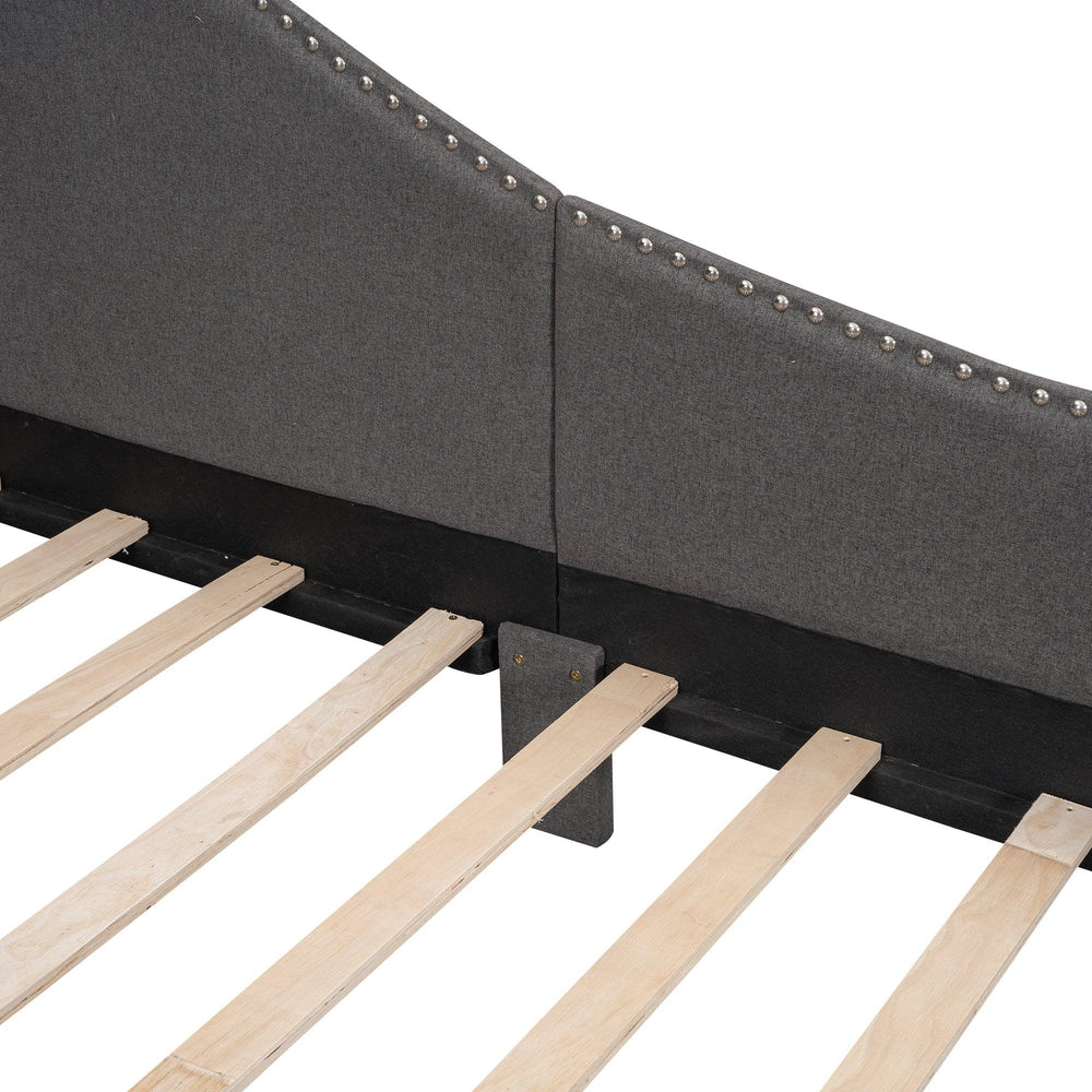 Twin Upholstered Linen Wood Frame Daybed With Armrest