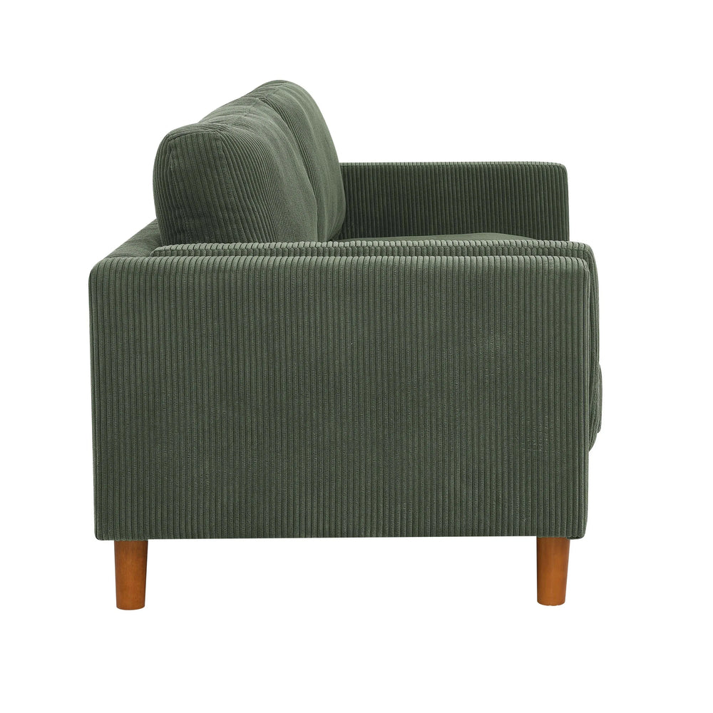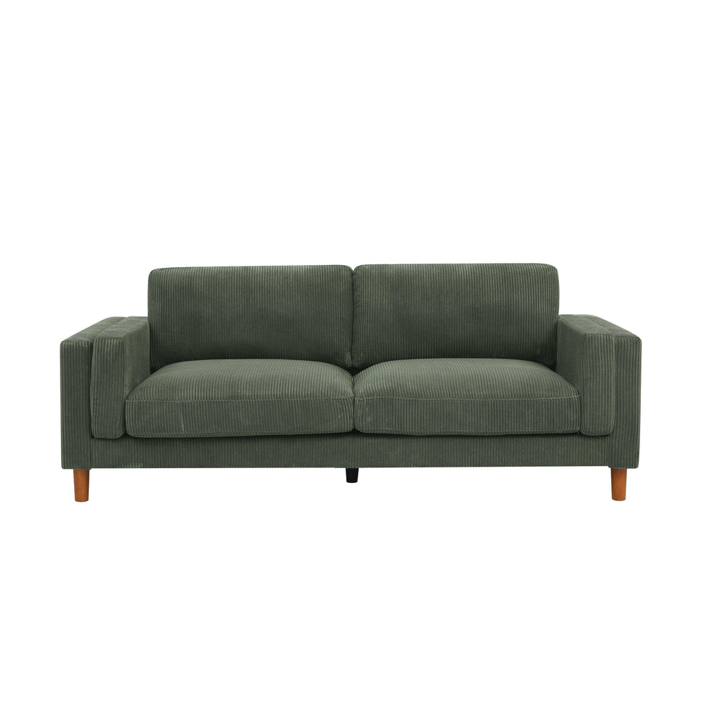 Dark Green Corduroy Upholstered Square Arm 3-Seat Sofa - Omega Lifestyles