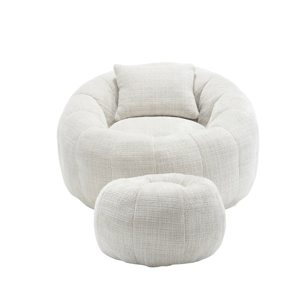 Relax and unwind in style with this modern bean bag chair, designed for adults seeking a comfortable, ergonomic seating solution. Upholstered in soft, durable chenille fabric, the chair offers a plush, cloud-like feel that cushions your body for hours of leisure, reading, or lounging. Its unique pumpkin-inspired shape provides full back support and wraps you in comfort, while the matching ottoman adds versatile footrest or extra seating. Lightweight and easy to move, this chair fits effortlessly into any living room, bedroom, or apartment setting without the hassle of installation. Whether you’re enjoying quiet time or entertaining guests, this chic and functional seating piece enhances your primary living space with both style and practicality. Elevate your relaxation today.