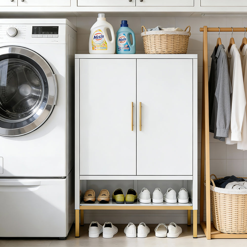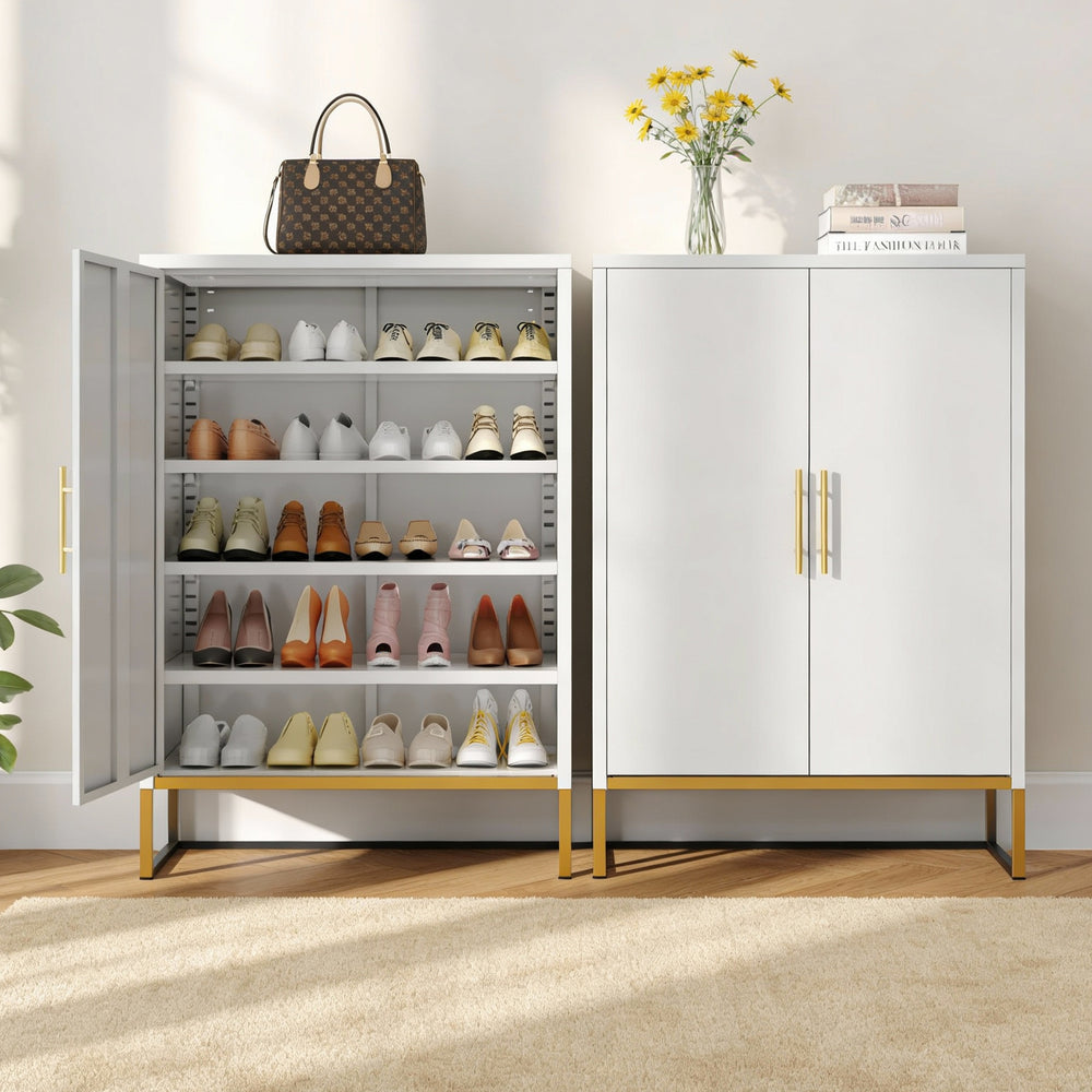 • Dual Doors: Keeps shoes out of sight for a tidy appearance.