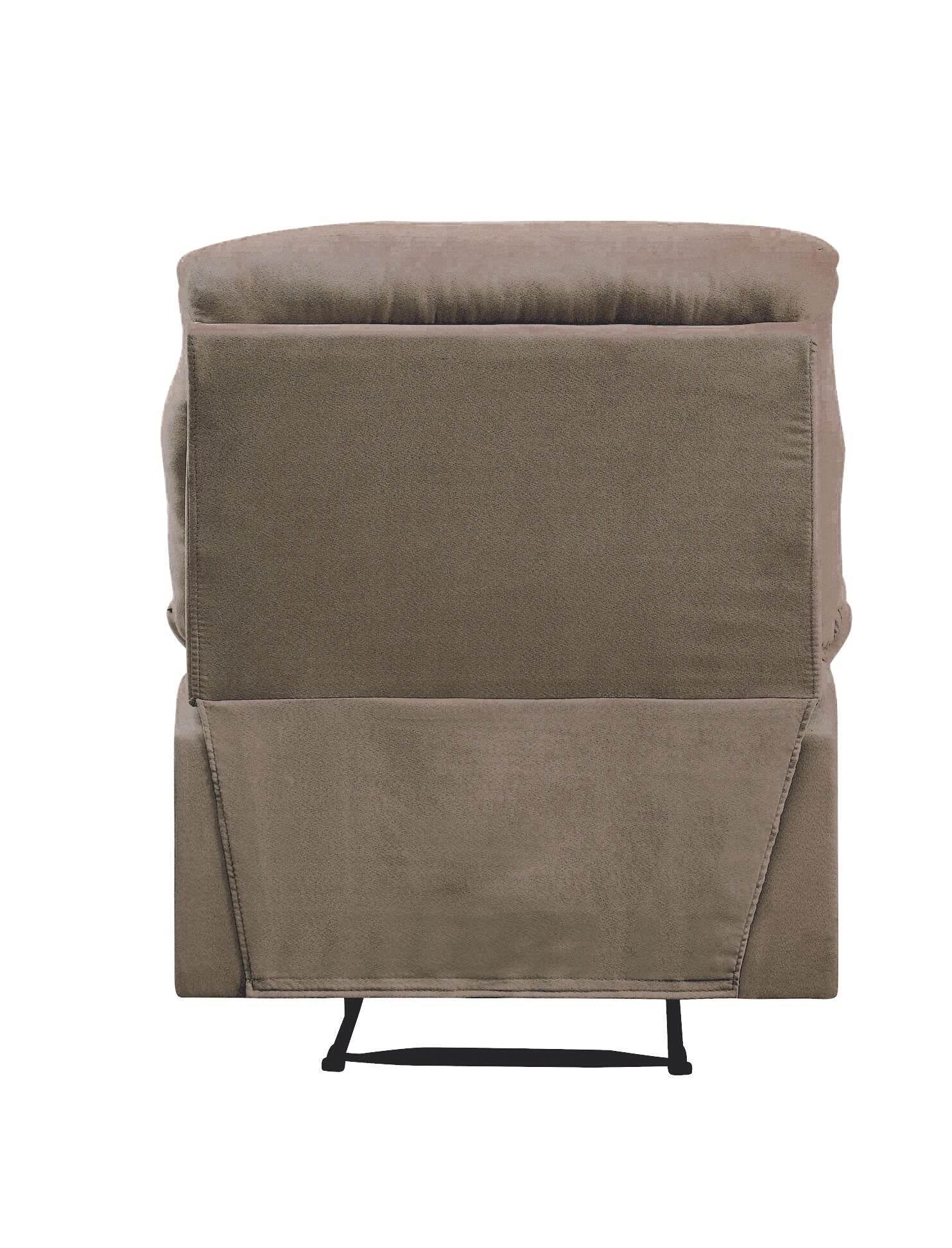 Relax and unwind in style with this expertly crafted light brown recliner designed for your primary living space. Upholstered in durable woven fabric, it combines softness with long-lasting resilience. The manual handle-operated reclining mechanism provides smooth, effortless adjustment, allowing you to find the perfect seating angle. Memory foam cushioning in the tight back and seat offers exceptional comfort and support, making it ideal for stress relief after a busy day. Pillow top armrests add an extra layer of plushness, enhancing your relaxation experience. The sturdy metal frame ensures stability and durability, while its compact 35" width and depth and 40" height make it a versatile addition to any room. Elevate your living room comfort today with this stylish recliner that blends functionality, comfort, and quality.