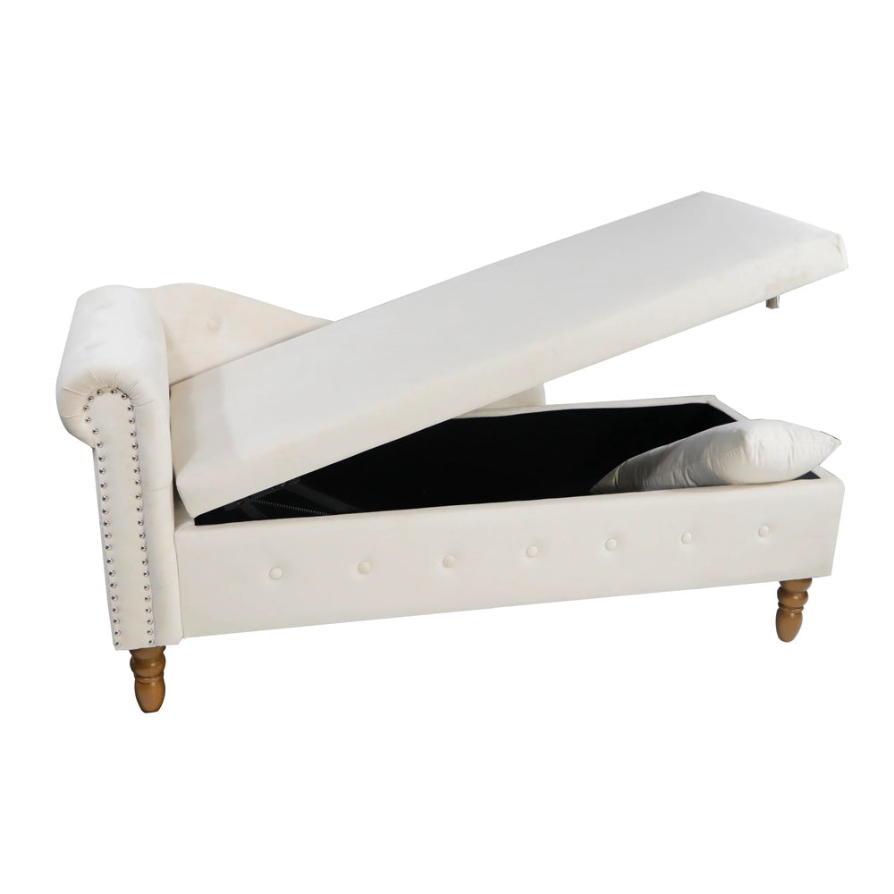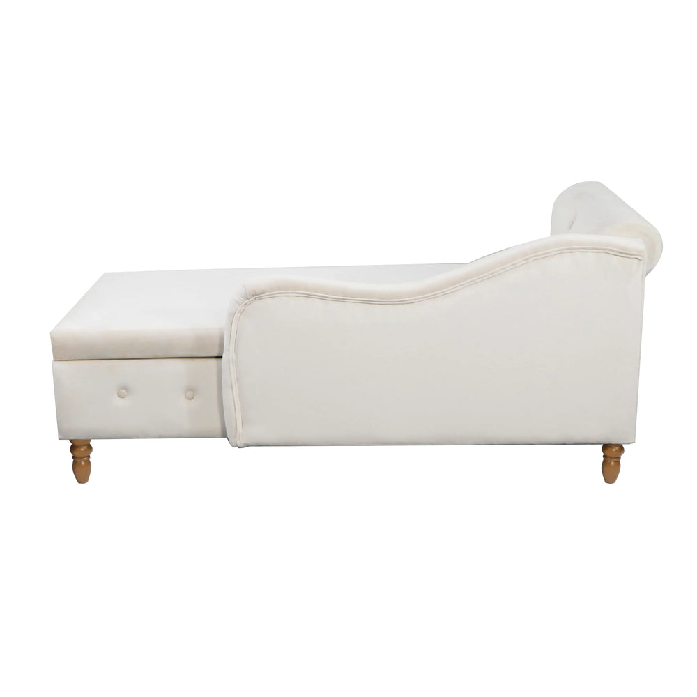 Beige Velvet Classic Storage Chaise Lounge Chair