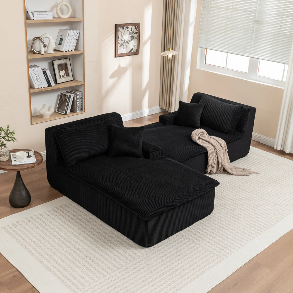 Unwind in style and comfort with this oversized chaise lounge chair, designed as a versatile upholstered sofa bed perfect for your living room, movie room, or bedroom. Crafted with high-density foam that contours softly to your body, this all-foam sleeper chair offers cloud-like support without noisy springs. Wrapped in soft, durable black corduroy fabric, it combines plush texture with stain resistance for easy care and lasting appeal. The compact 67.3 inches long by 39.4 inches wide design fits seamlessly into various spaces, while reversible armrests let you customize its placement to suit your room layout. Shipped vacuum-sealed and ready to use within 48 hours, this no-assembly sleeper chair adapts effortlessly as a cozy love seat or an oversized chaise lounge when paired. Elevate your relaxation space today with this practical and stylish sleeper chair.
