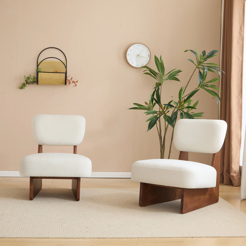 Elevate your living space with this stylish set of 2 modern beige lounge chairs, perfect for living rooms, bedrooms, or offices. Upholstered in premium polyester fabric, these chairs offer a soft, durable surface that is easy to maintain. Featuring an ergonomic design, each chair provides a wide cushioned seat and supportive backrest, inviting you to relax whether you're reading, working, or entertaining. The sturdy solid wood base with a rich walnut finish ensures lasting stability and timeless appeal. Their minimalist design and neutral tones seamlessly blend with various decor styles, adding both function and sophistication to your space. Upgrade your seating experience and create a cozy retreat today.