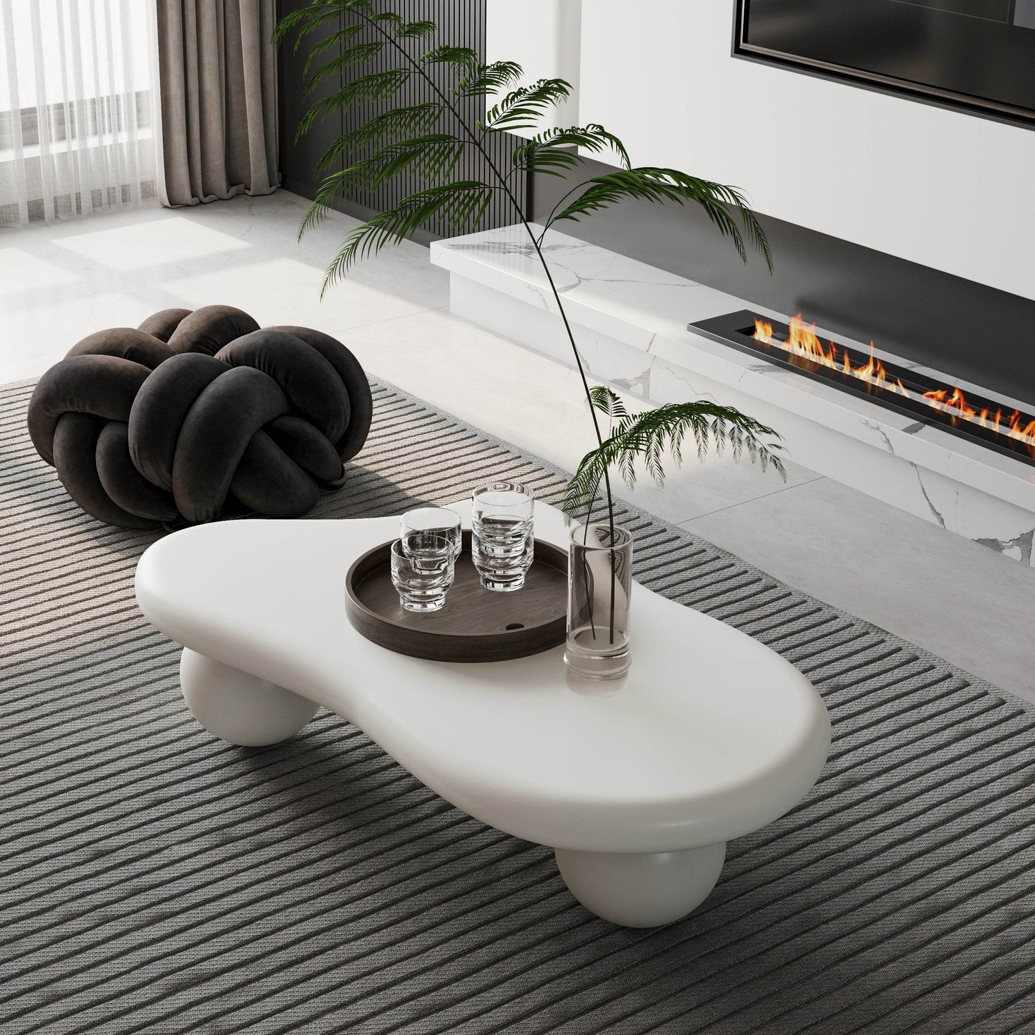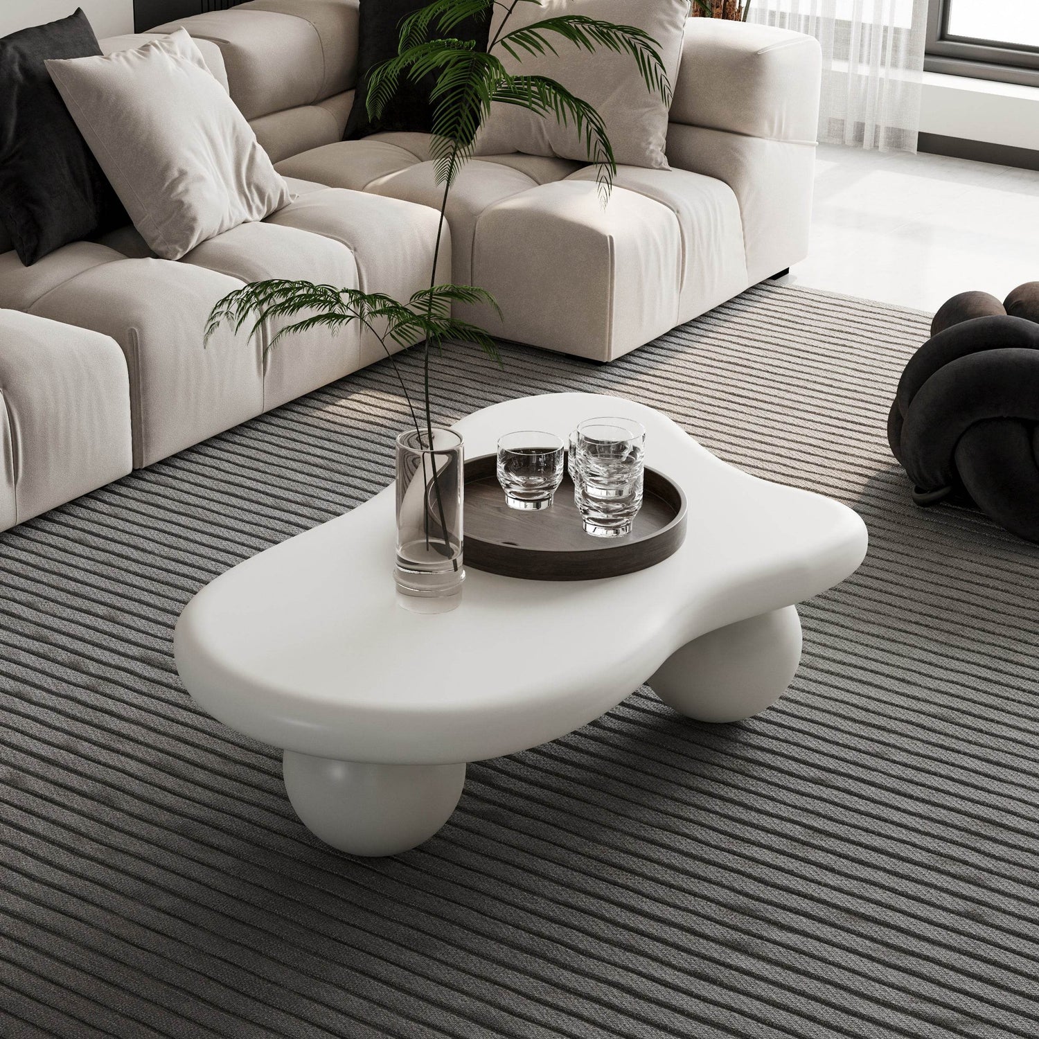 Bring modern elegance and functional style to your living room with this unique cloud-shaped coffee table. Crafted from durable MDF with a smooth lacquered finish, its distinctive flowing design adds a soft, artistic touch to any primary living area. The spacious 40 by 26.8 inch (102 by 68 cm) tabletop offers ample room for décor, books, or everyday essentials, while the sturdy three ball legs provide reliable stability. Thoughtfully designed with rounded edges and a thickened surface, this table is safe for homes with children and pets. Easy to assemble with simple screw-on legs, it supports up to 200 pounds for versatile use. Its creamy white color complements a wide range of décor styles, making it an eye-catching centerpiece that blends beauty and practicality. Upgrade your home’s comfort and style today.