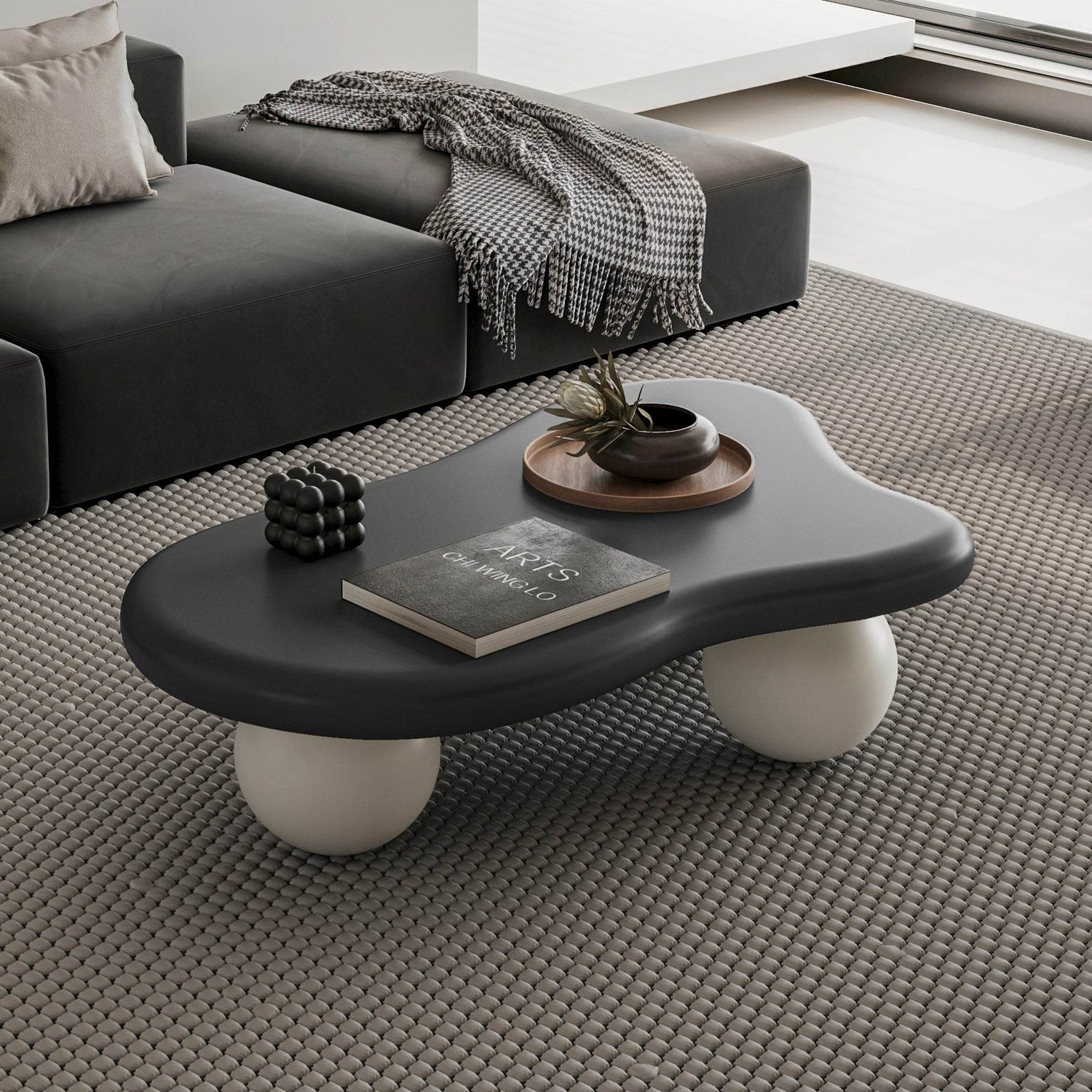 Modern cloud-shaped coffee table features a spacious MDF lacquered top with elegant curves and stable 3-ball leg design for durability. Child and pet-friendly with smooth rounded edges, ideal for primary living spaces, easy to assemble with quick screw-on legs.