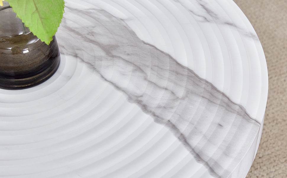 Elevate Your Living Space with the Elegant White Marble Pattern Round Coffee Table