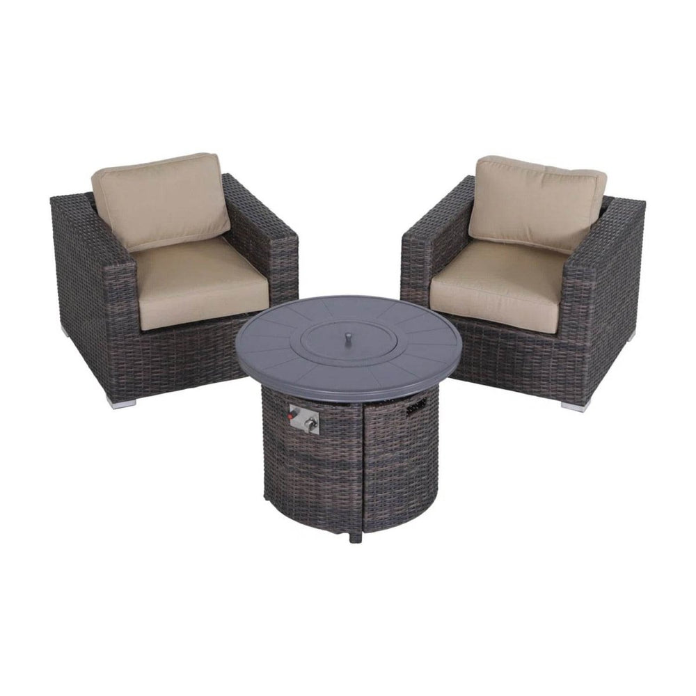 3-Piece Outdoor Wicker Seating Set With Fire Pit - Omega Lifestyles