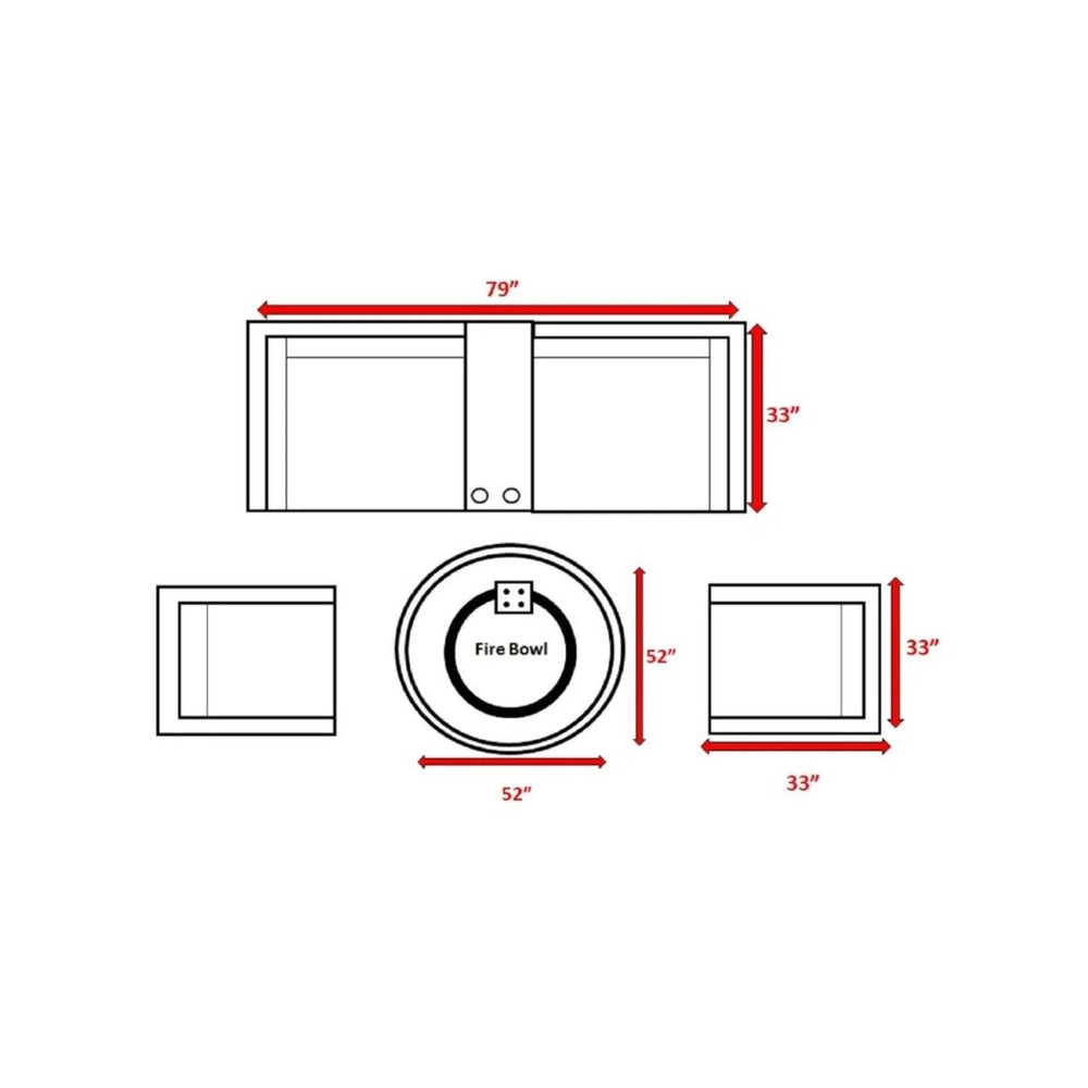 • Spacious Fire Pit Table: 52" square x 25" high (132 cm x 64 cm) provides ample space for dining.