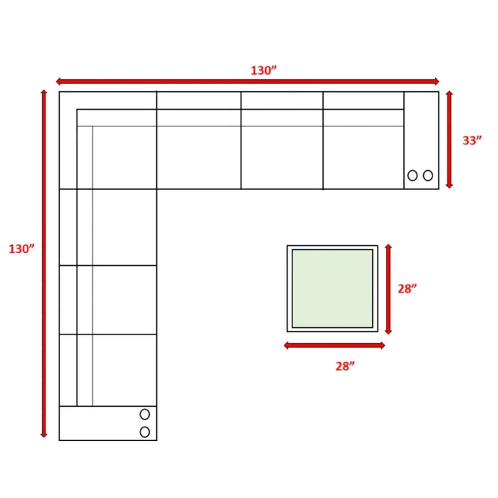 - Overall Dimensions: 130" L x 130" W x 26" H, weighing 261 lbs for robust construction.