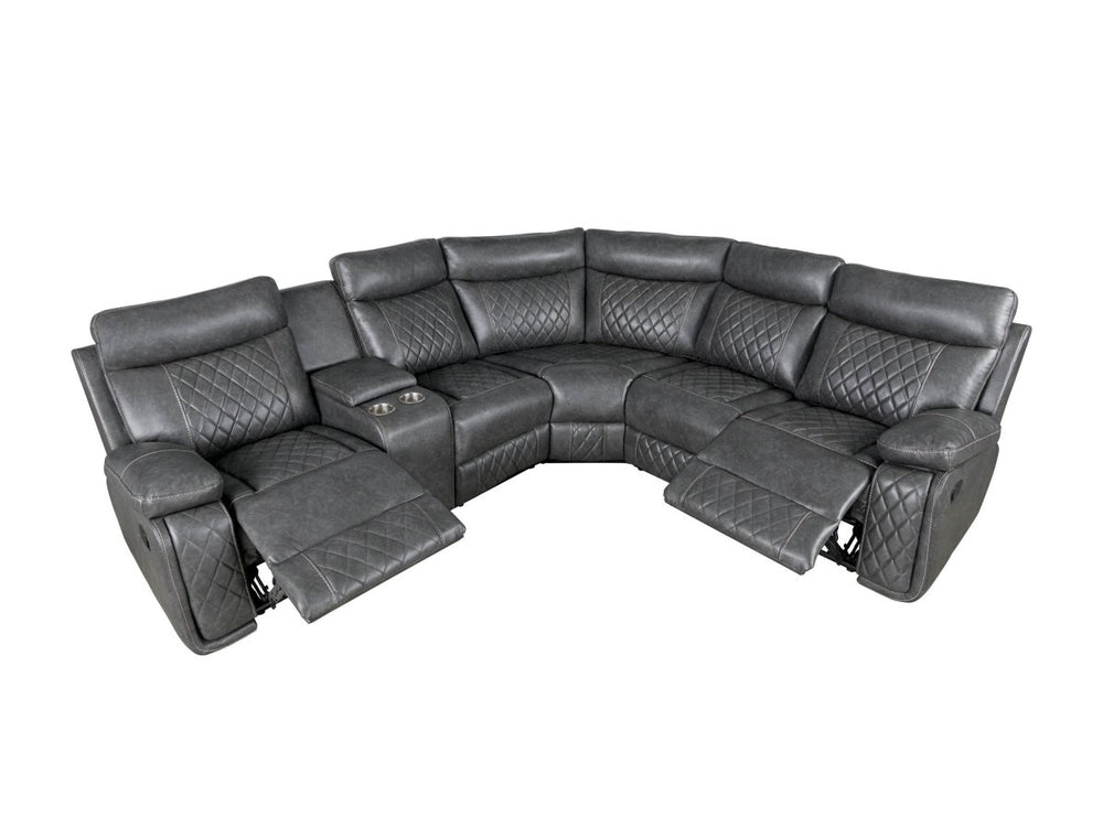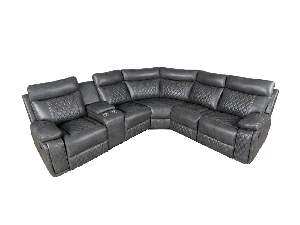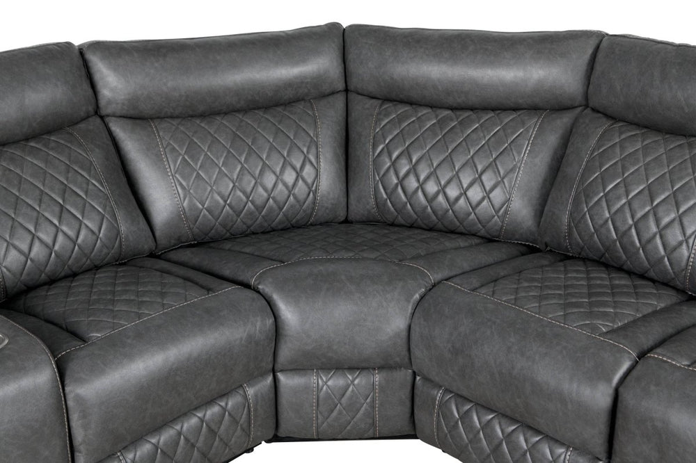 Enhance your home theater or living room with this spacious 5-seat manual recliner sofa, crafted for ultimate relaxation. Upholstered in durable gray PU leather, it offers a sleek, modern look that's easy to maintain. The generous foam padding combined with pocket coil springs delivers exceptional neck and back support from headrest to footrest, ensuring comfort during long movie marathons or casual lounging. With a sturdy iron and plywood frame, this reclining sofa promises lasting durability and stability. Its easy-to-use manual reclining mechanism allows you to adjust to any position between 100° and 160° for personalized comfort. Thoughtful features like built-in cup holders and hide-away storage keep essentials within reach, making this recliner sofa a perfect blend of function and style. Elevate your relaxation today and transform your space into a cozy entertainment haven.
