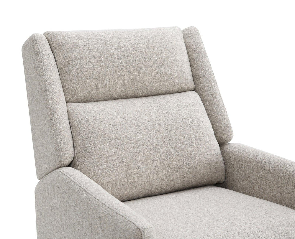 Upgrade your primary living space with this elegant pushback manual recliner, crafted for both comfort and timeless style. Upholstered in breathable textured linen-look fabric in a versatile beige finish, it offers a soft, durable seating surface. The high back support features subtle channel detailing that contours to your upper body, providing ergonomic relaxation after a long day. Its push-back reclining mechanism allows effortless adjustment to your preferred lounging angle, enhancing your comfort without the need for levers or buttons. Supported by tapered solid wood legs in a dark espresso finish, this recliner adds a warm contrast and mid-century charm to any room. Lightweight yet sturdy at 80 pounds, it offers easy assembly and blends seamlessly with modern or classic décor. Elevate your relaxation today with this chic and functional living room essential.