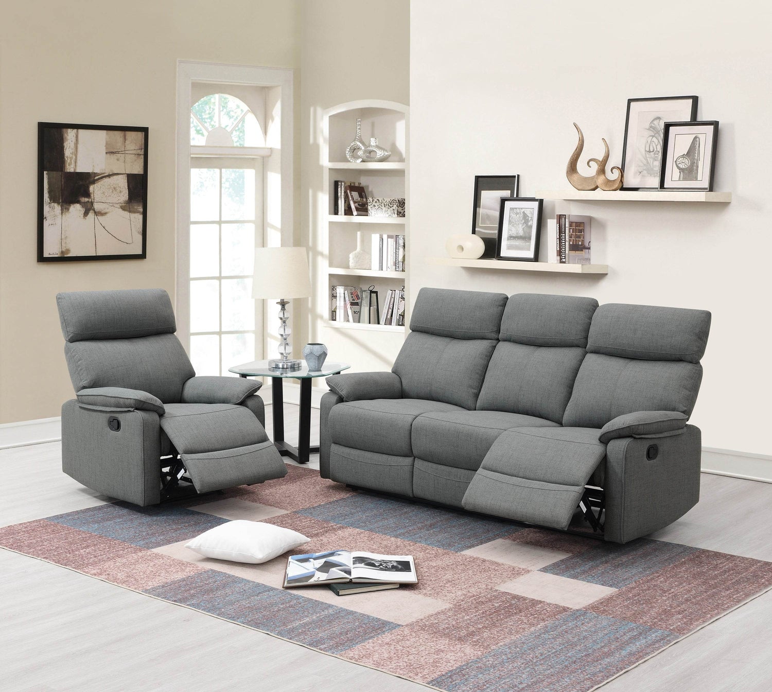 Experience Superior Comfort with the Gray Burlap Fabric Recliner Motion Sofa