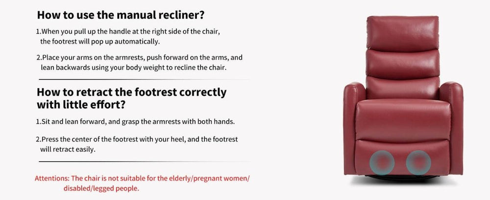 • 360° Swivel and Rocking Recliner: Smooth metal base allows effortless turning and gentle rocking.