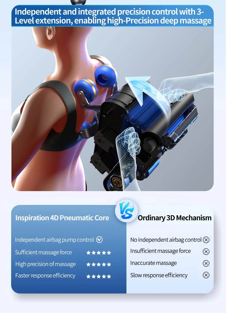 • 4D Smart Massage Technology: Precision air pressure replicates human hand techniques for ultimate relaxation.
