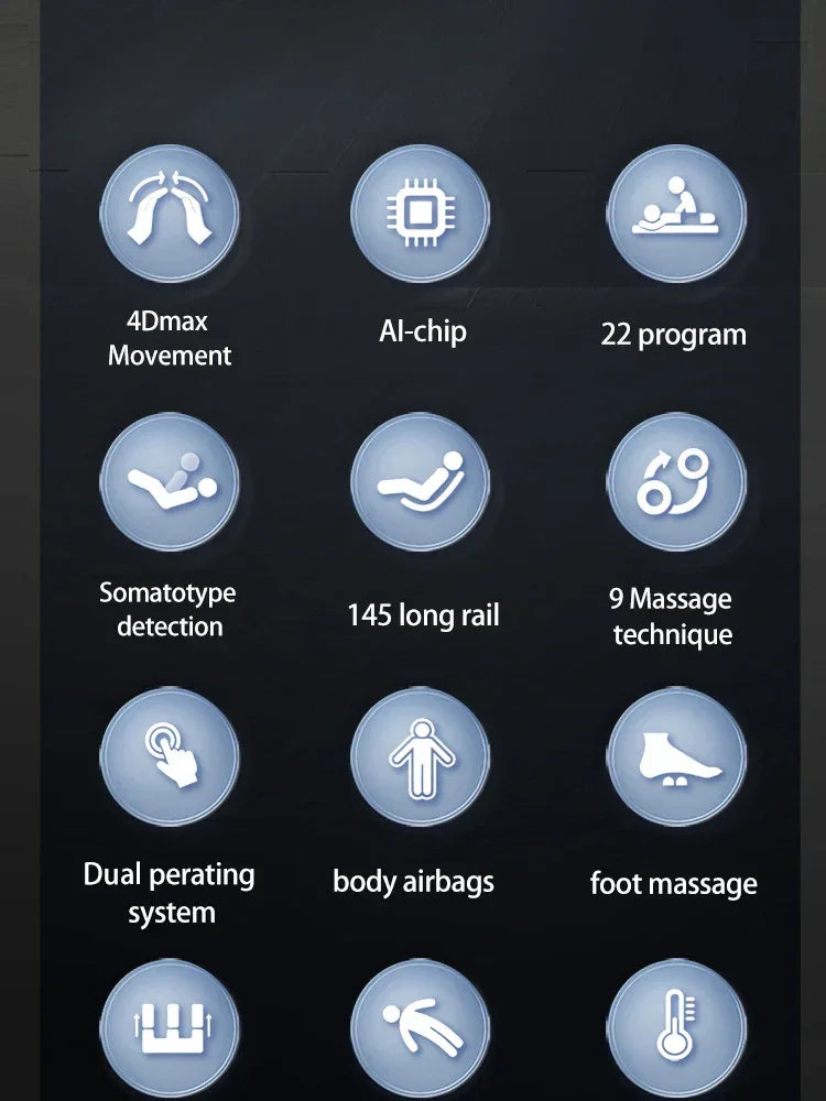 • 4D AI Body Detection: Delivers personalized full-body massage tailored to your shape.