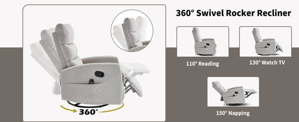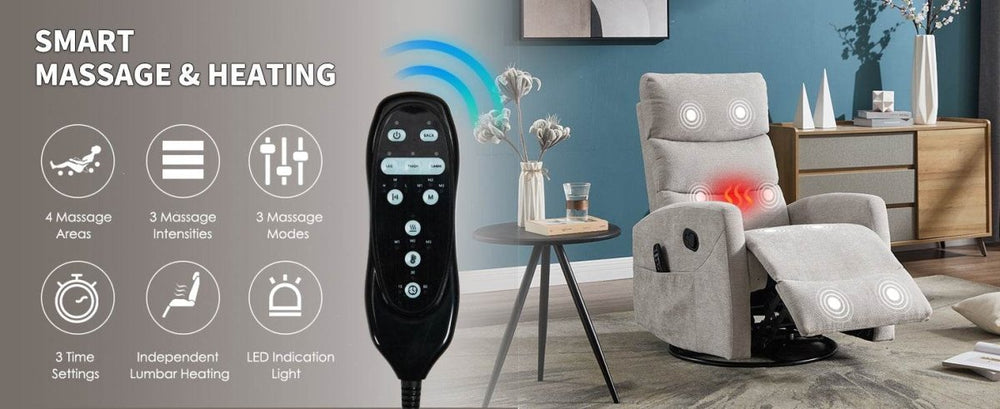 Medium-Firm Heat Massage Recliner Chair With Swivel And Rocker
