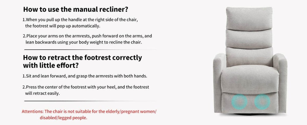 - Reclines Up to 155°: Easily adjust position with an intuitive side handle.