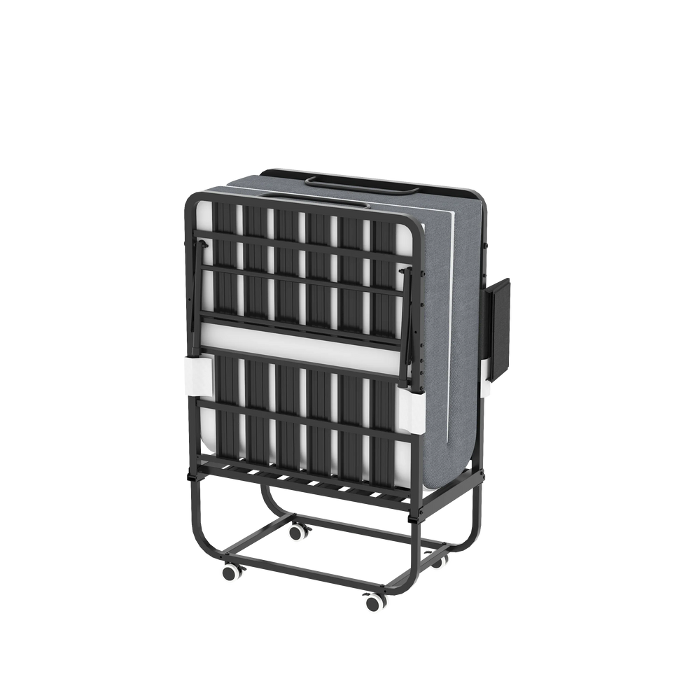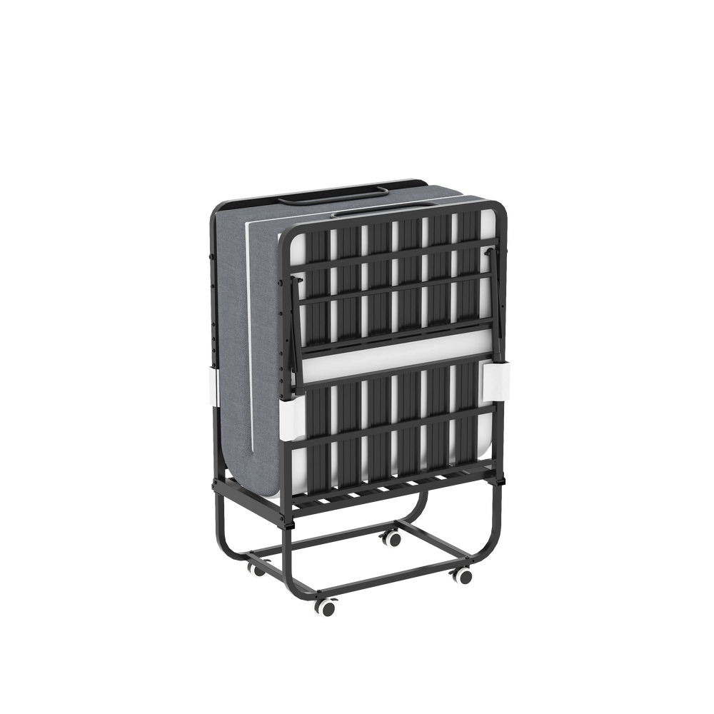 Perfect for guests, small spaces, or multi-room use, this 75-inch folding bed offers a unique blend of comfort and portability. The supportive 5-inch (13 cm) memory foam mattress contours to your body, relieving pressure points for a restful sleep. Designed with a sturdy heavy-duty metal frame, it supports up to 450 pounds for reliable durability. Its compact 31-inch (79 cm) width and slim foldable design make storage effortless, ideal for apartments, offices, or dorms. Smooth-rolling locking wheels provide easy mobility, so you can set up or store your rollaway bed without hassle. Enjoy the extra length that accommodates taller sleepers comfortably without sacrificing space. Elevate your guest experience and optimize your living area today.
