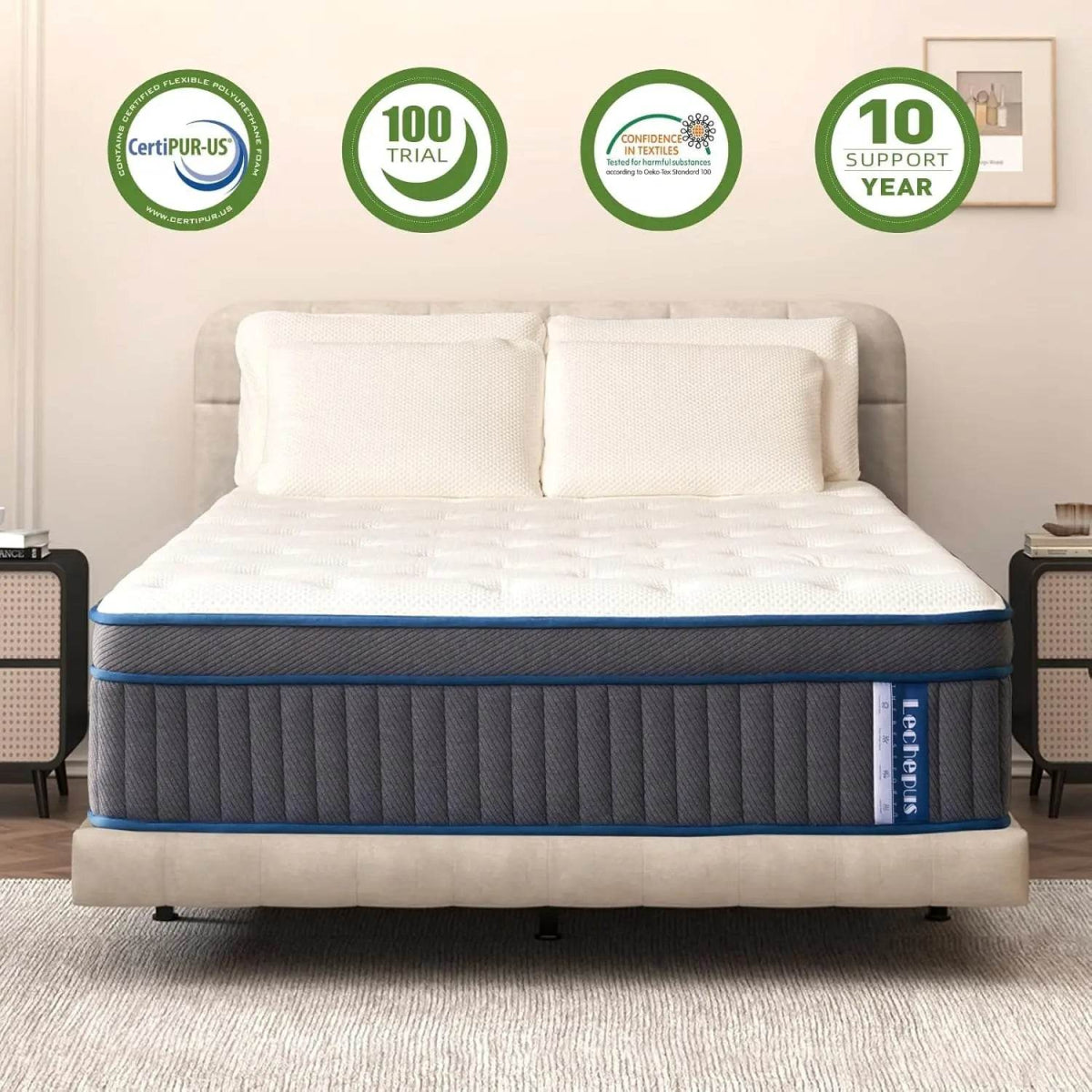 • Certified Safety: CertiPUR-US and Oeko-Tex Standard 100 certified for peace of mind.