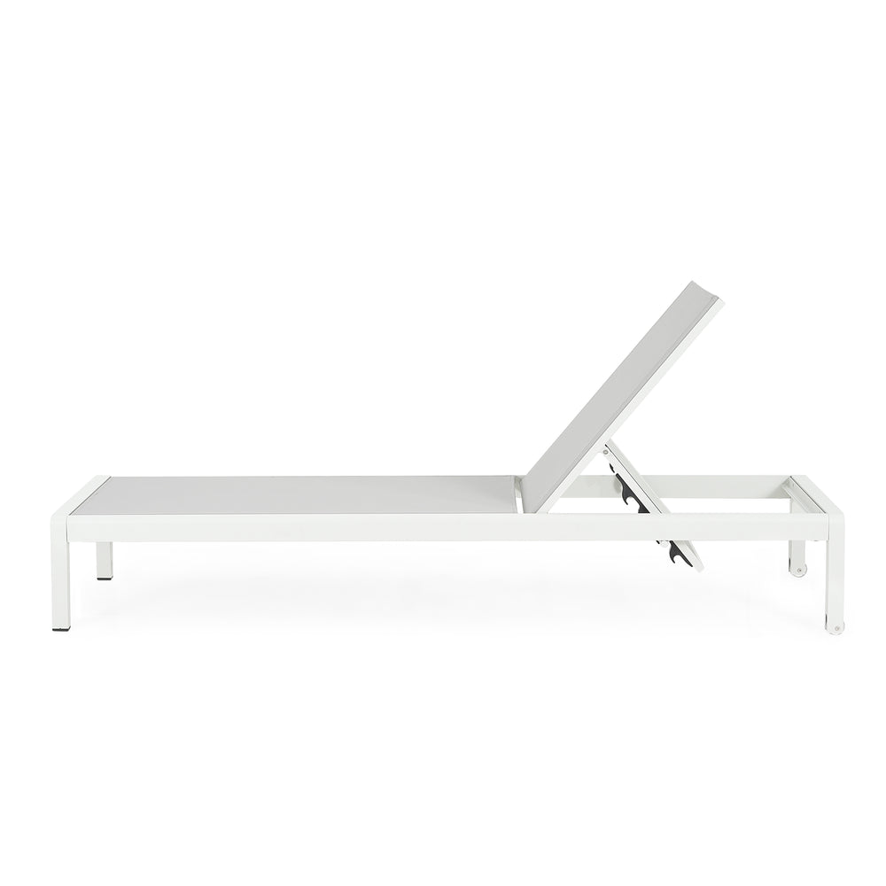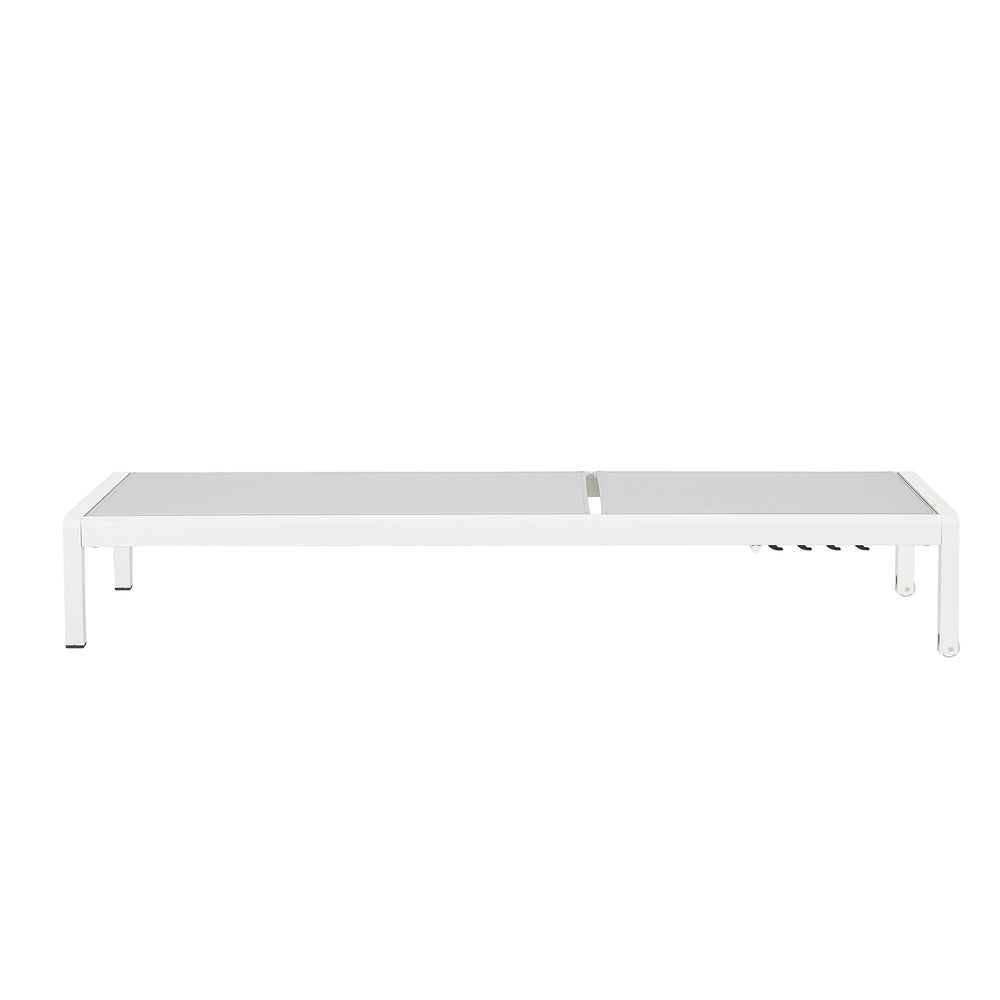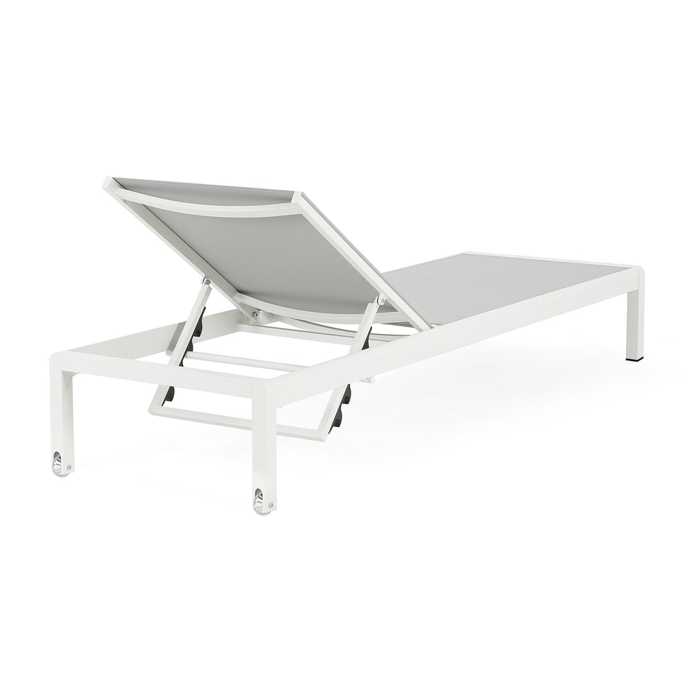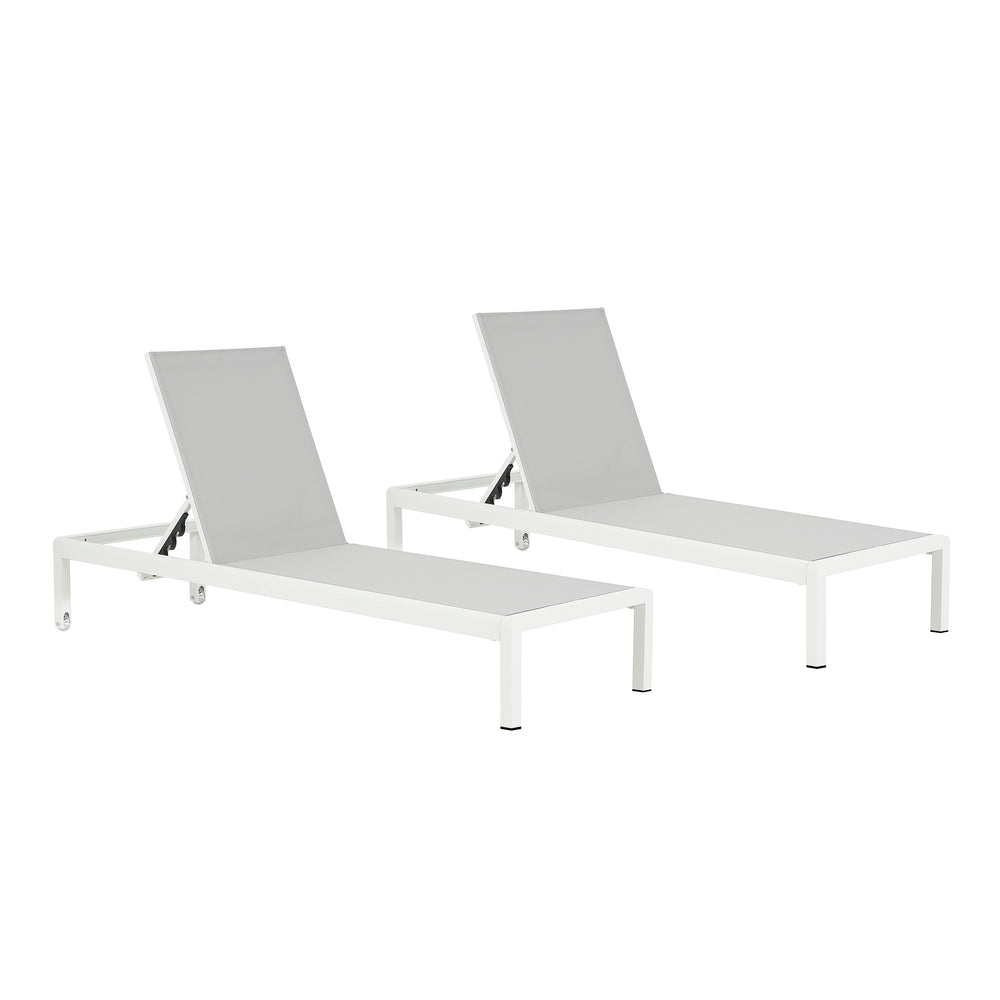 Upgrade your outdoor living space with this durable 2-piece chaise lounge set designed for exceptional comfort and versatile use. Crafted with rust-resistant, powder-coated aluminum frames and breathable, UV-treated mesh, these chairs withstand sun, rain, and poolside conditions with ease. Each chair features a 4-position recline that lets you find the perfect angle whether you're reading, sunbathing, or enjoying a post-swim rest. Lightweight yet strong, the frame supports up to 400 pounds while the built-in transport wheels make moving your lounge effortless on grass, deck, or patio. Quick to assemble and easy to store, these stylish white and gray chairs bring both practicality and relaxation to your pool, patio, or backyard. Elevate your outdoor comfort today.