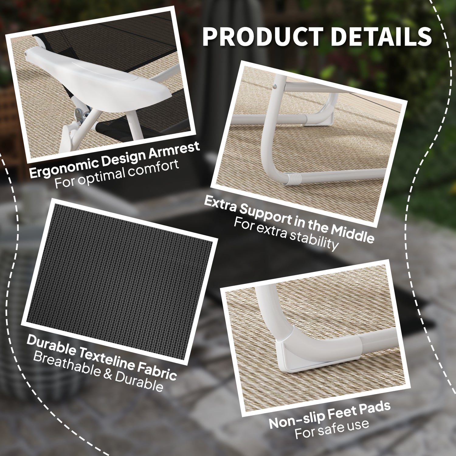 • Armrests support your arms naturally for effortless outdoor lounging joy