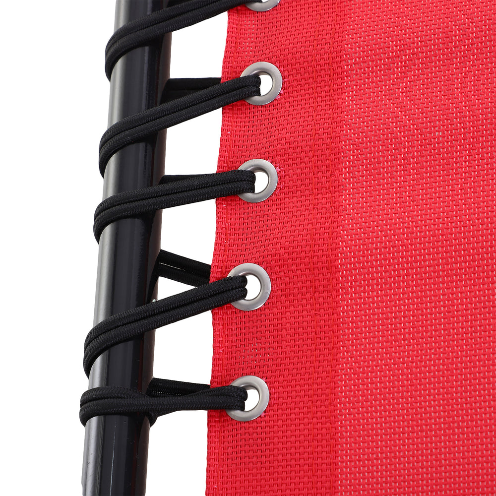 Experience unmatched comfort and versatility with this foldable outdoor chaise lounge, perfect for sunbathing, relaxing, or napping by the pool, patio, or beach. Its breathable bungee and mesh seating contours to your body, providing a form-fitting surface that keeps you cool and comfortable during warm days. Adjust the backrest to one of four reclining positions and customize your relaxation with the included pillow and adjustable footrest. Crafted from durable steel with a water-resistant powder finish, this lounge chair is built to withstand outdoor elements while remaining lightweight for easy transport and storage. Whether you’re enjoying a sunny day outdoors or need extra seating for guests, this chair offers the ideal blend of comfort, convenience, and durability. Elevate your outdoor lounging experience today.