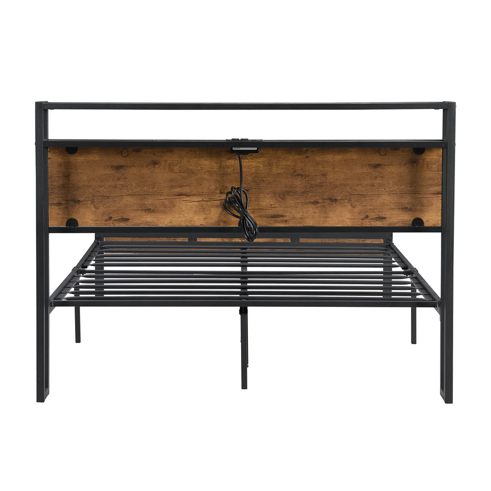 Queen Metal Platform Bed Frame With Wooden Headboard