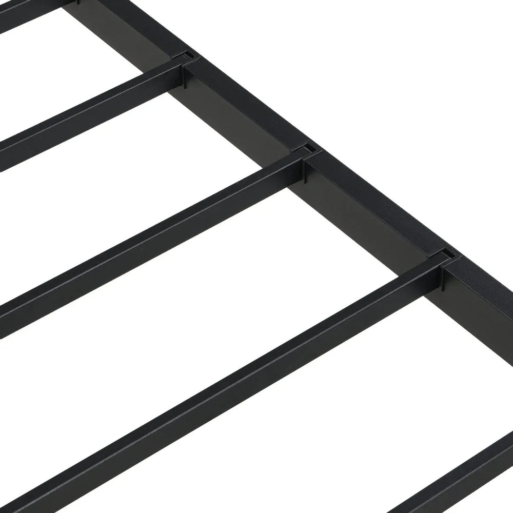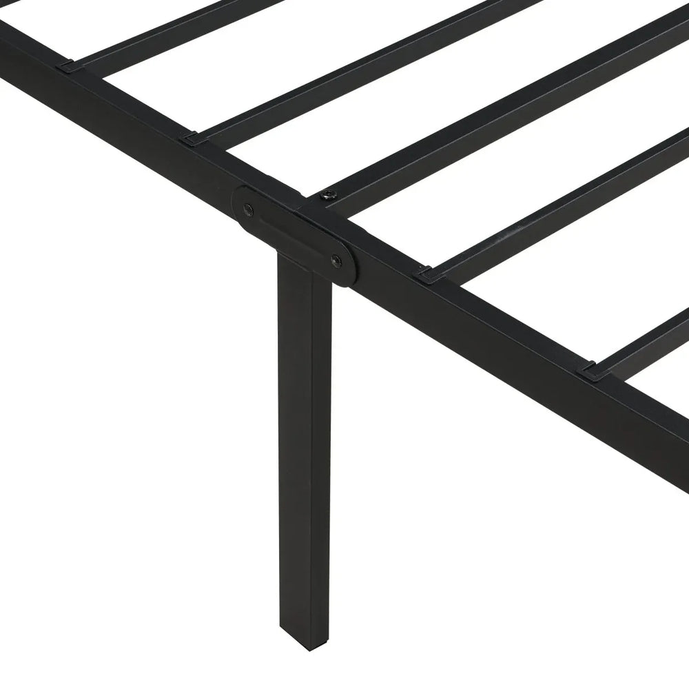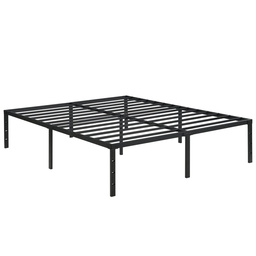 Upgrade your bedroom with this durable metal bed frame crafted to provide reliable, noiseless support for your mattress. Engineered to withstand up to 1,000 pounds of static pressure without bending or creaking, this black bed frame ensures long-lasting stability and a peaceful night’s rest. Reinforced steel slats offer even mattress support, enhancing comfort while protecting your mattress longevity. With a raised 16.5-inch (42 cm) clearance underneath, it’s perfect for organizing storage and keeping your room clutter-free. Designed for quick, hassle-free assembly, this frame is ideal for bedrooms, guest rooms, dormitories, and hotels. Its universal design includes reserved holes for easy attachment of headboards and footboards, giving your sleep space a finished look. Elevate your bedroom foundation today with this strong, quiet, and practical queen size bed frame.