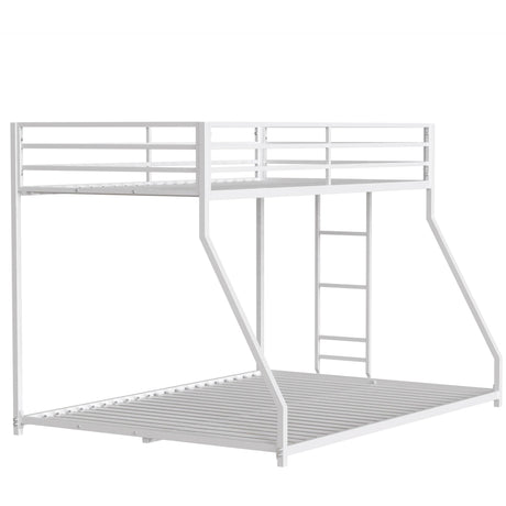 Full Over Full Metal Bunk Bed Frame With Ladder and Guardrails