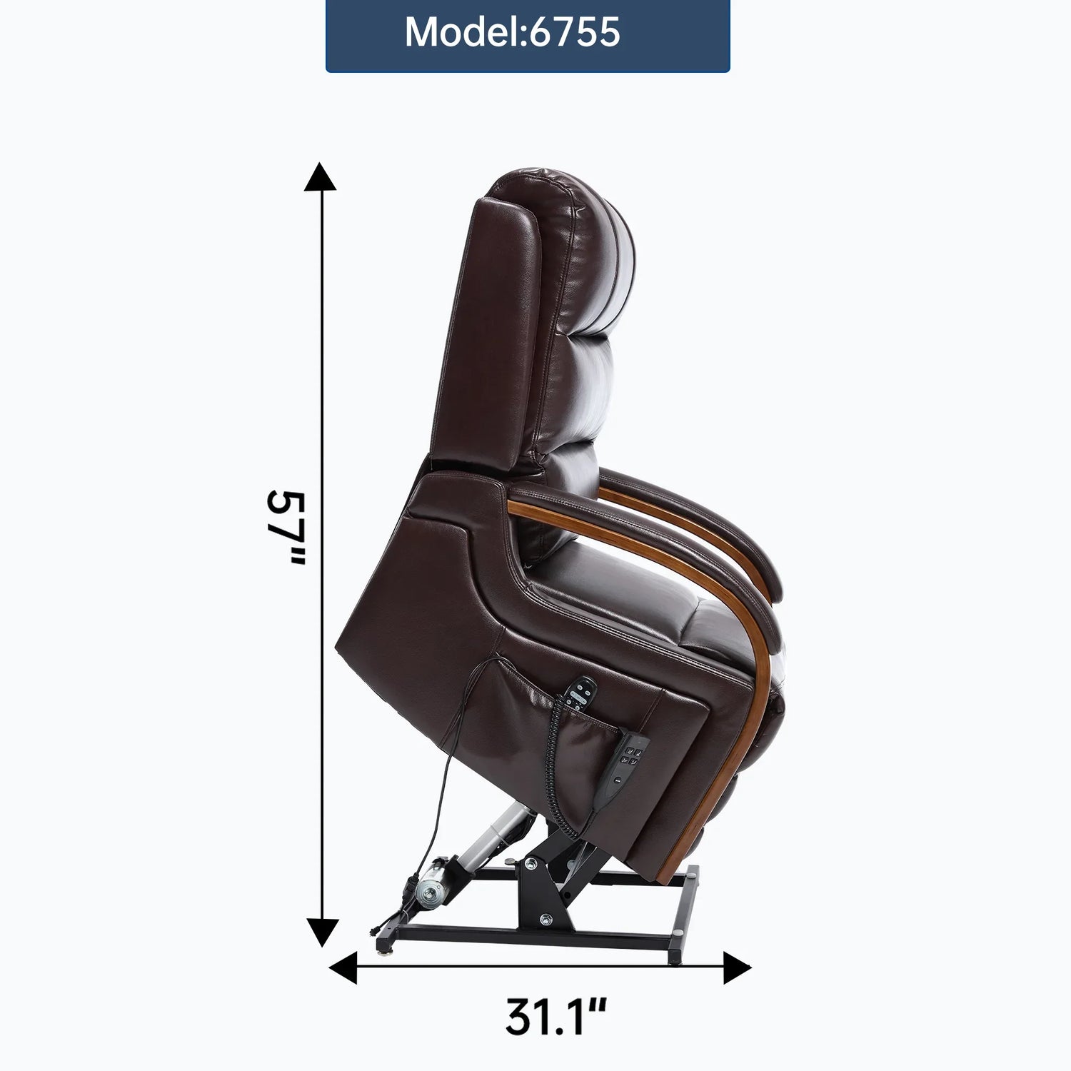 Designed for ultimate relaxation and support, this power lift recliner chair features a dual motor system that allows infinite positioning from full recline to lift assist. Upholstered in durable brown faux leather with medium-firm fiber foam and polyester padding, it delivers both comfort and style. The chair’s power-remote control operates smoothly and silently, making it ideal for those with mobility challenges, balance issues, or post-surgery recovery. Enhanced by heat and massage functions with 8 vibrating nodes targeting key areas like back, lumbar, thighs, and legs, it promotes blood circulation and full-body relaxation. Solid wood armrests offer natural beauty and ergonomic support, while handy side pockets keep essentials within reach. With easy, tool-free assembly and a heavy-duty metal frame, this recliner is built to last and elevate your living space. Elevate your relaxation today.