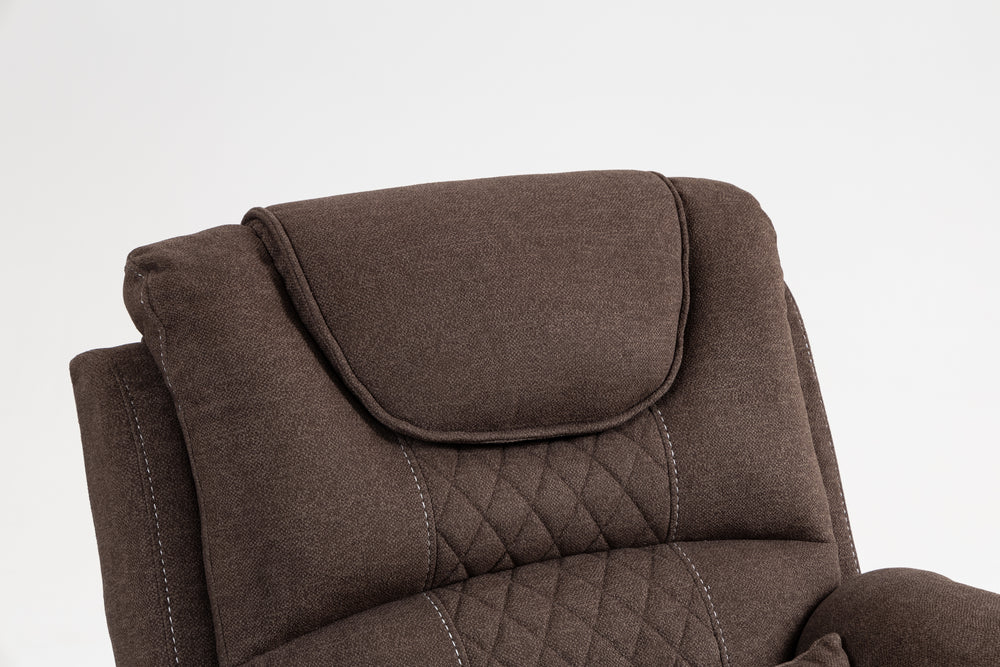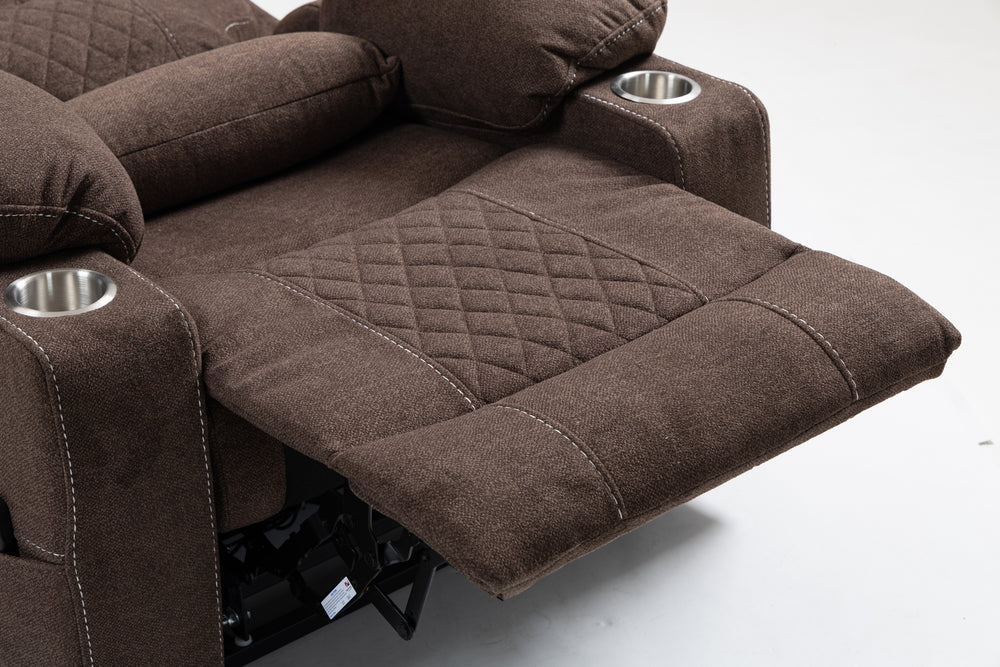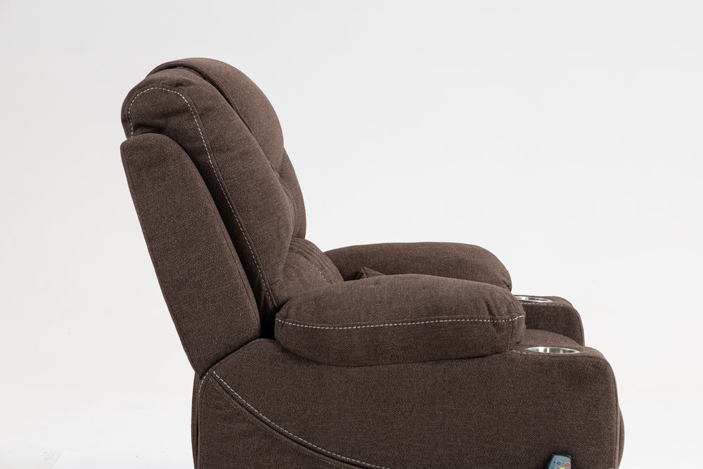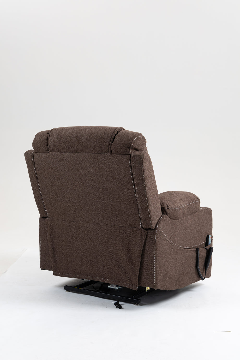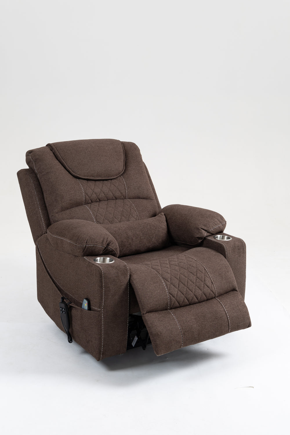 Designed for maximum relaxation and support, this oversized lift recliner chair features premium brown velvet upholstery that feels soft to the touch while remaining durable. Perfectly suited for big and tall individuals, its extra-large 25-inch wide seat and 74.2-inch fully reclined length provide ample space to unwind comfortably. Equipped with a dual OKIN silent lift motor system, you can effortlessly adjust the backrest and footrest independently, reclining up to a flat 180 degrees for optimal resting positions. Thoughtfully crafted for ease of use, the chair includes convenient cup holders on both armrests, keeping your favorite beverages within reach. Built to support up to 400 lbs, this heavy-duty recliner balances strength with plush comfort, making it an ideal choice for lounging, reading, or napping in your sitting room. Elevate your relaxation experience today with this versatile power recliner chair.