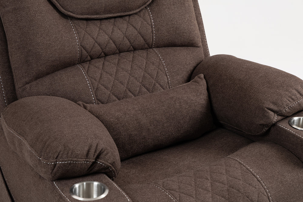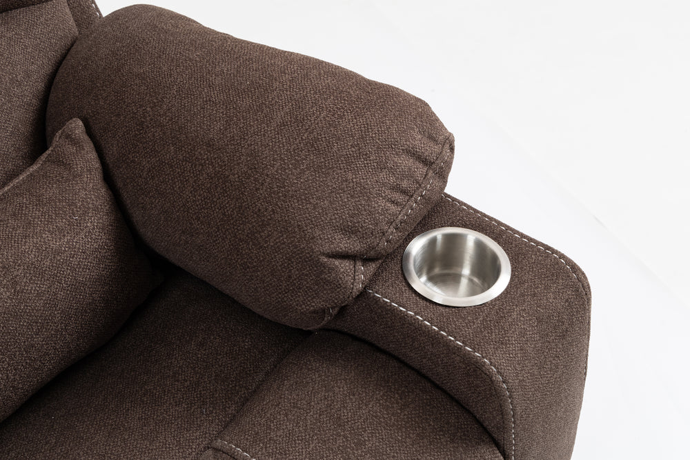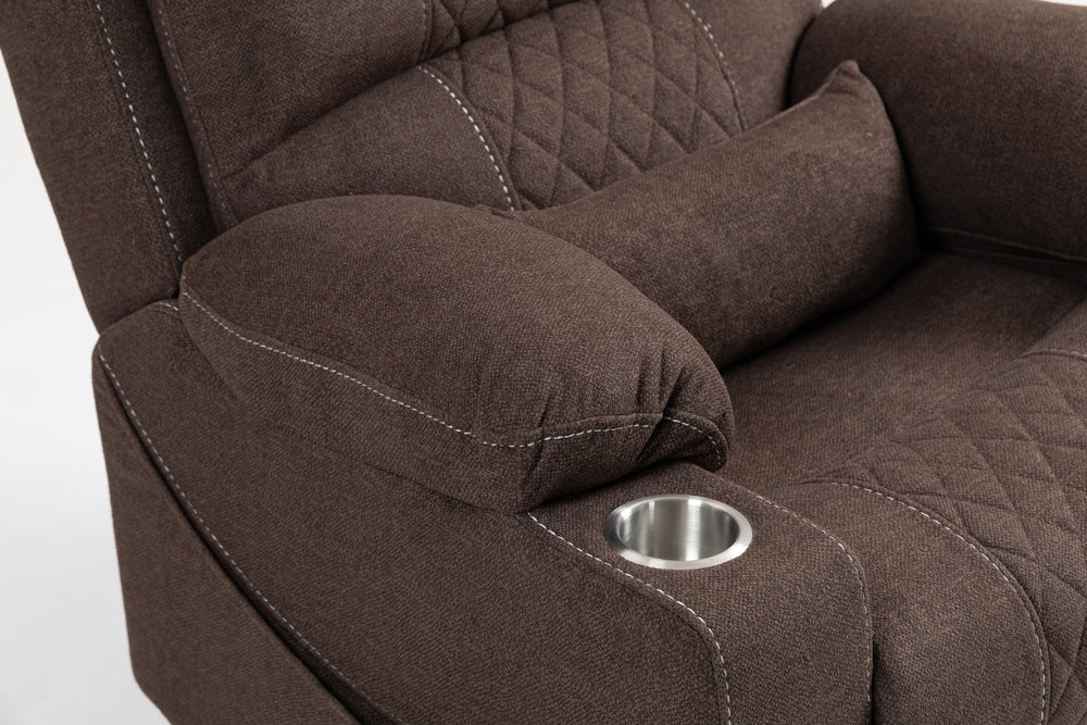 • Integrated Cup Holders: Conveniently placed on both armrests for drinks.