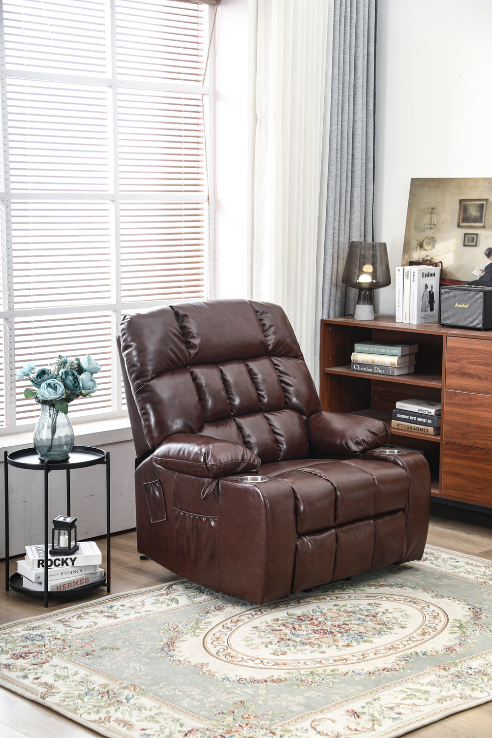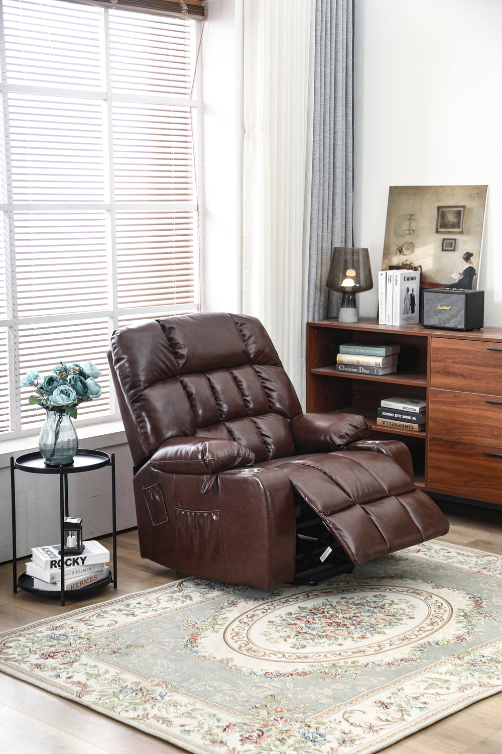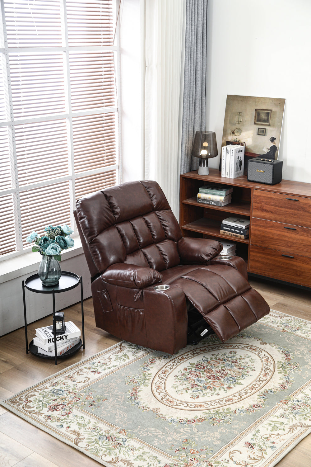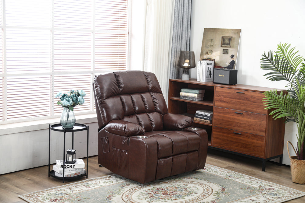 Designed specifically to support seniors and those with limited mobility, this power lift recliner chair combines advanced functionality with premium comfort. The chair features a powerful yet silent UL-approved German OKIN lift motor that gently elevates to assist standing, reducing strain on knees and back. Upholstered in soft brown PU with high-density foam cushioning, it provides exceptional support for the head, back, waist, and legs. The chair reclines smoothly up to 170 degrees, allowing you to find the perfect position for reading, watching TV, or resting. Enhanced with an integrated back and leg massager equipped with heat and multiple massage modes, it delivers soothing relief right where you need it. Plus, the formaldehyde-free, eco-conscious wood foundation ensures a healthy living environment. Elevate your relaxation and independence today with this expertly designed lift chair.