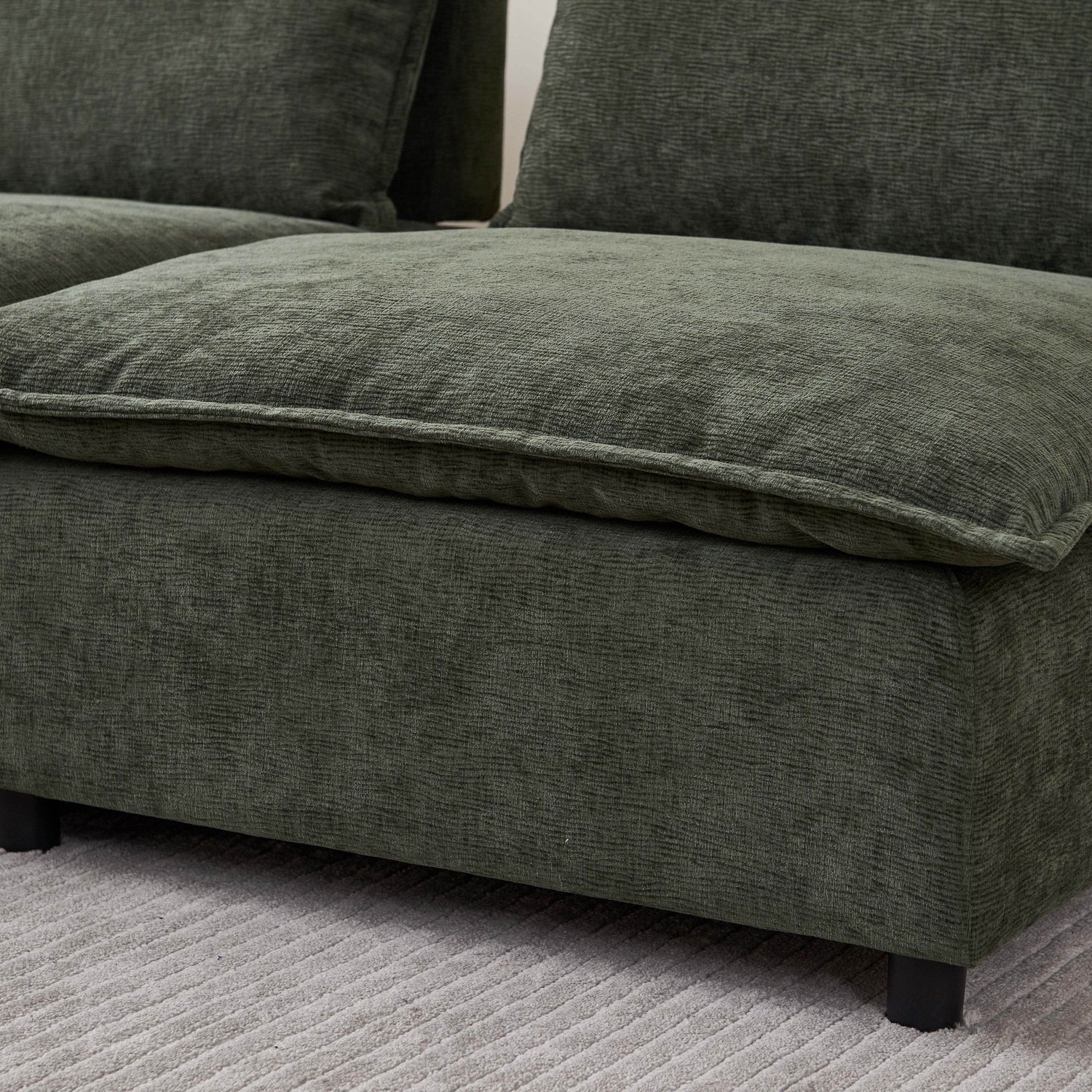 Armless chenille fabric sofa chair features foam cushioning and a movable backrest pillow for medium-soft comfort. Its modular design allows free combination, fitting small spaces like apartments and offices, ideal for living rooms, bedrooms, and versatile seating needs.