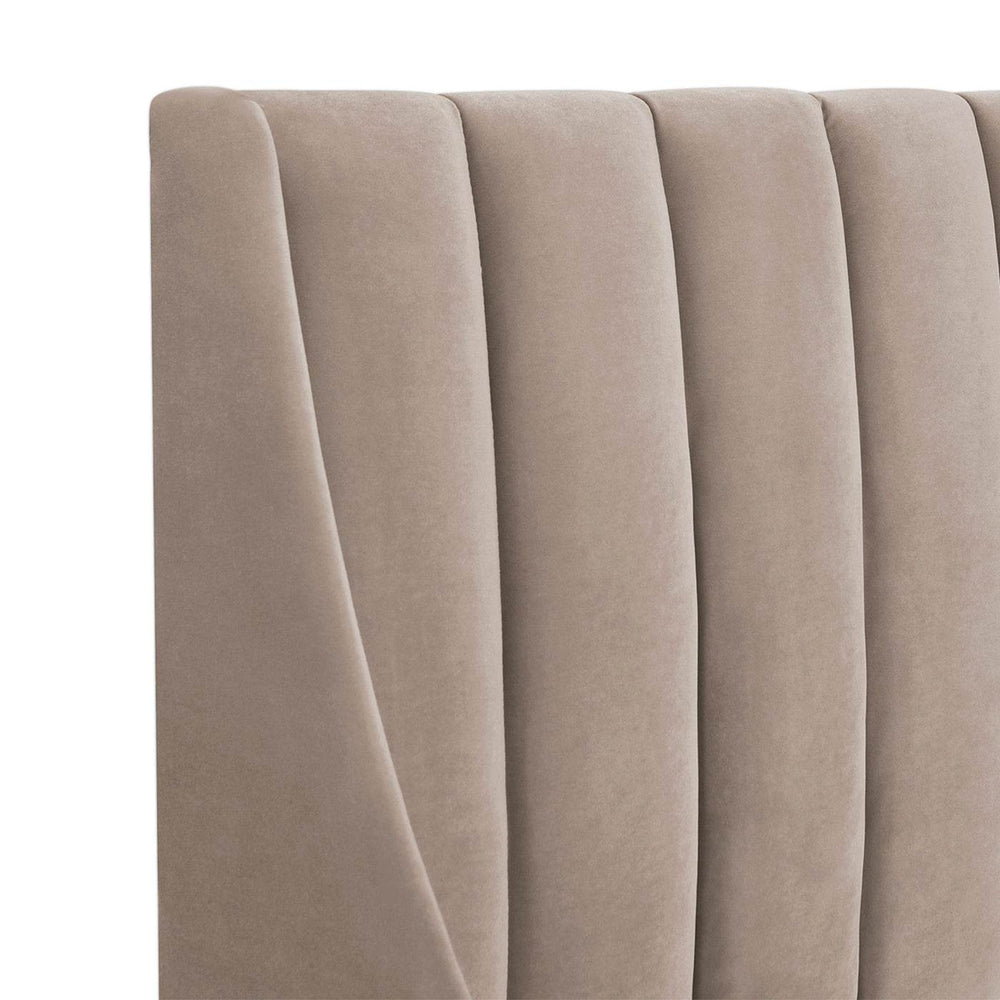 Velvet upholstery invites a soft, soothing touch for peaceful nights