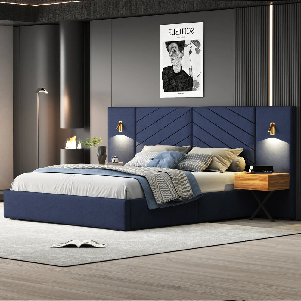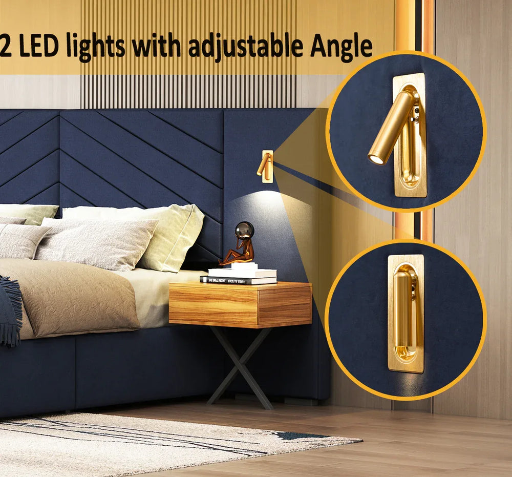 - Integrated LED Bedside Lights: Two adjustable lamps for reading or ambient lighting