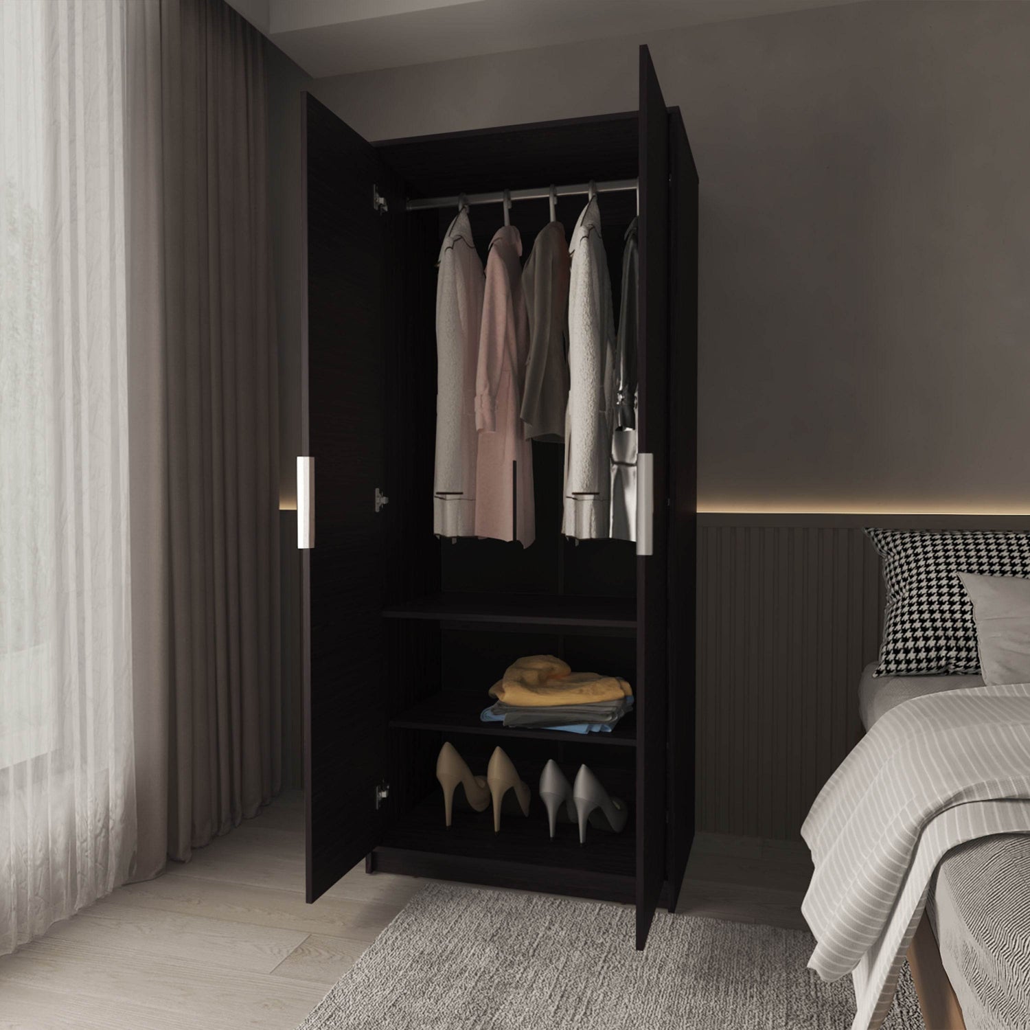 Modern Two-Door Wardrobe With Hanging Rod And Shelves