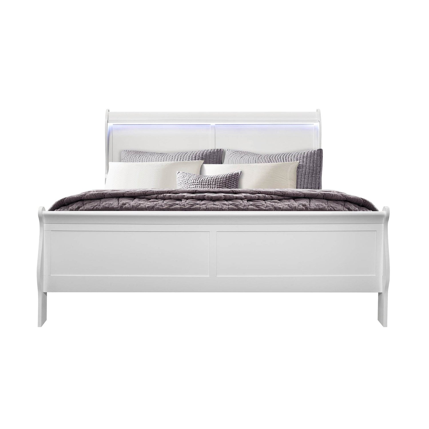 Modern White Sleigh King Bed Frame With LED Lighting is backordered and will ship as soon as it is back in stock.