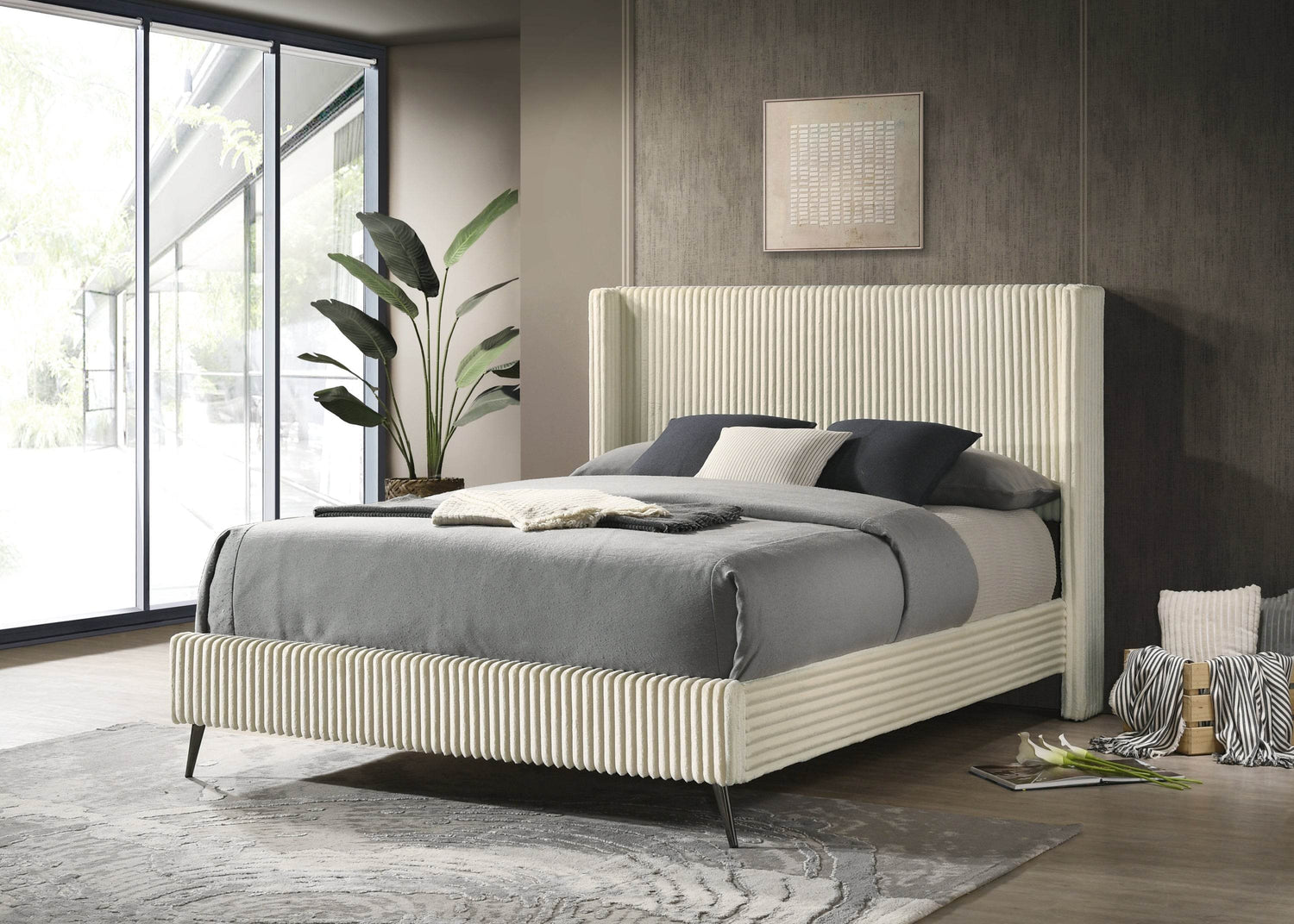 Wide Wale Corduroy Upholstered Cream Panel Bed