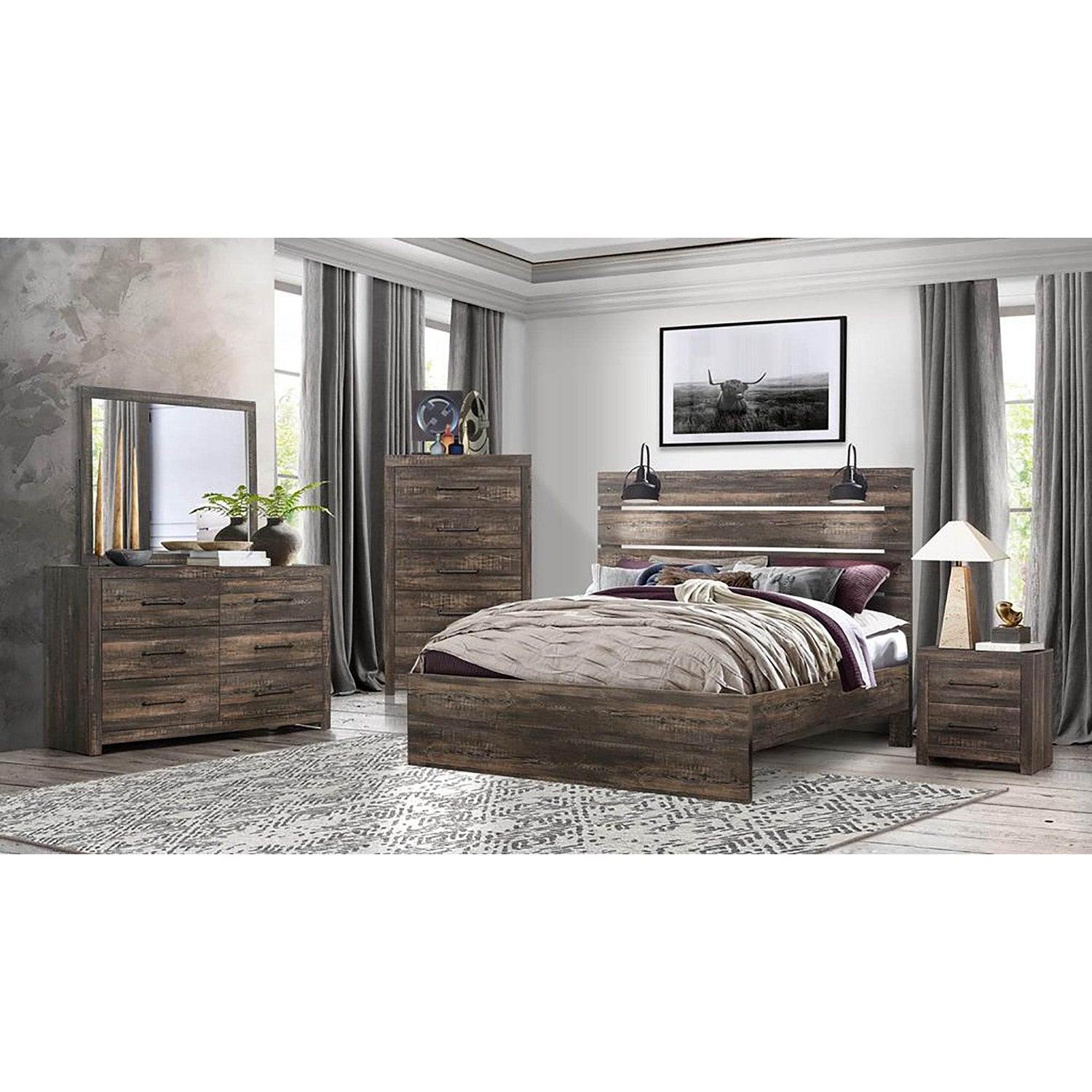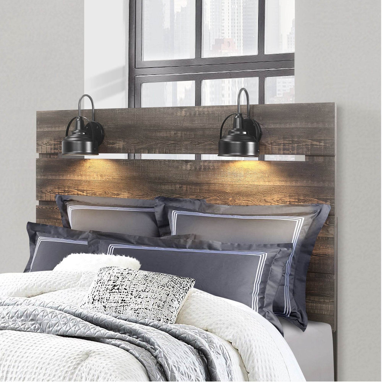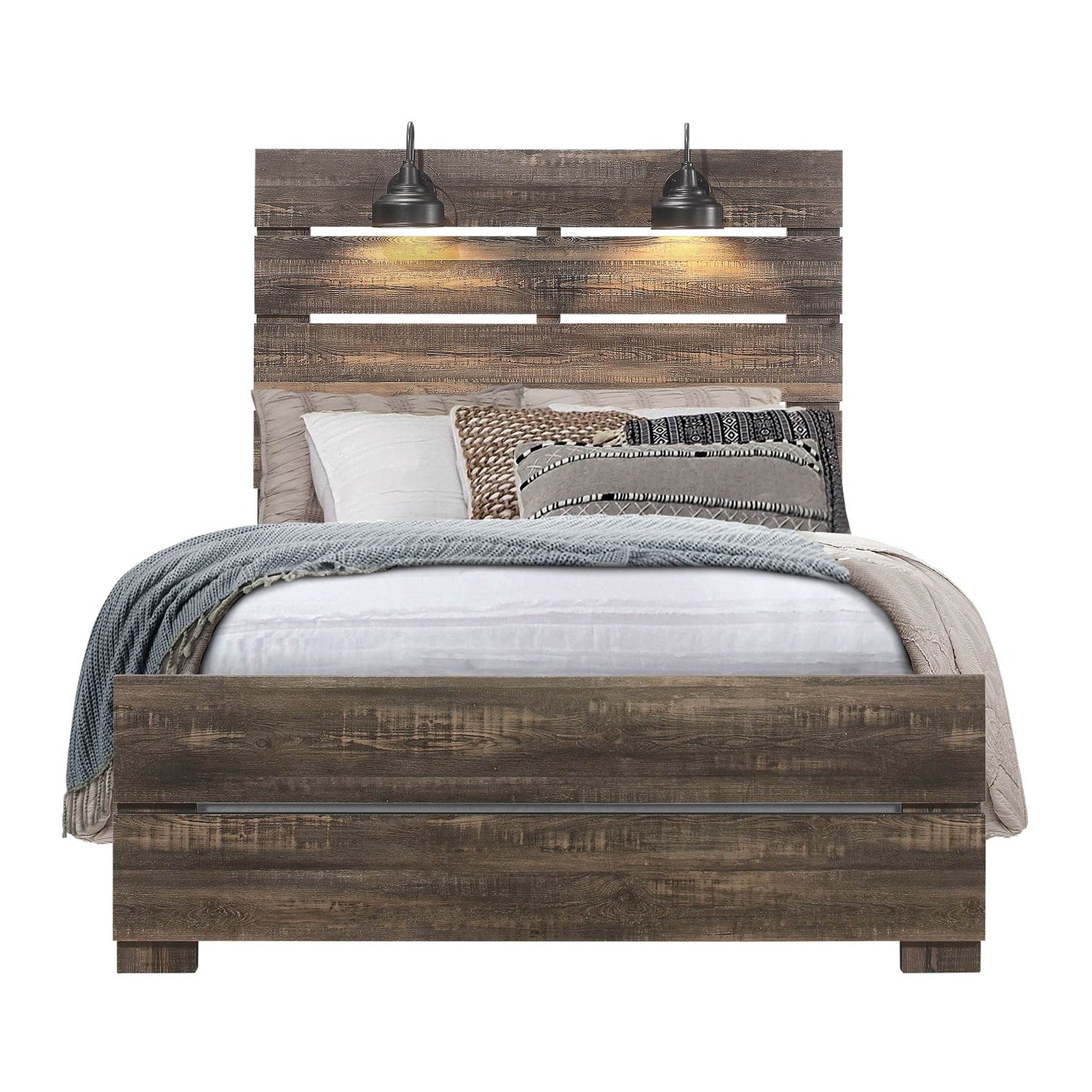 Modern Dark Oak Queen Panel Bed With Headboard Light