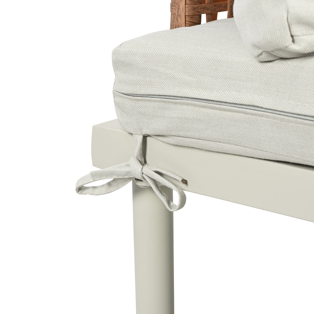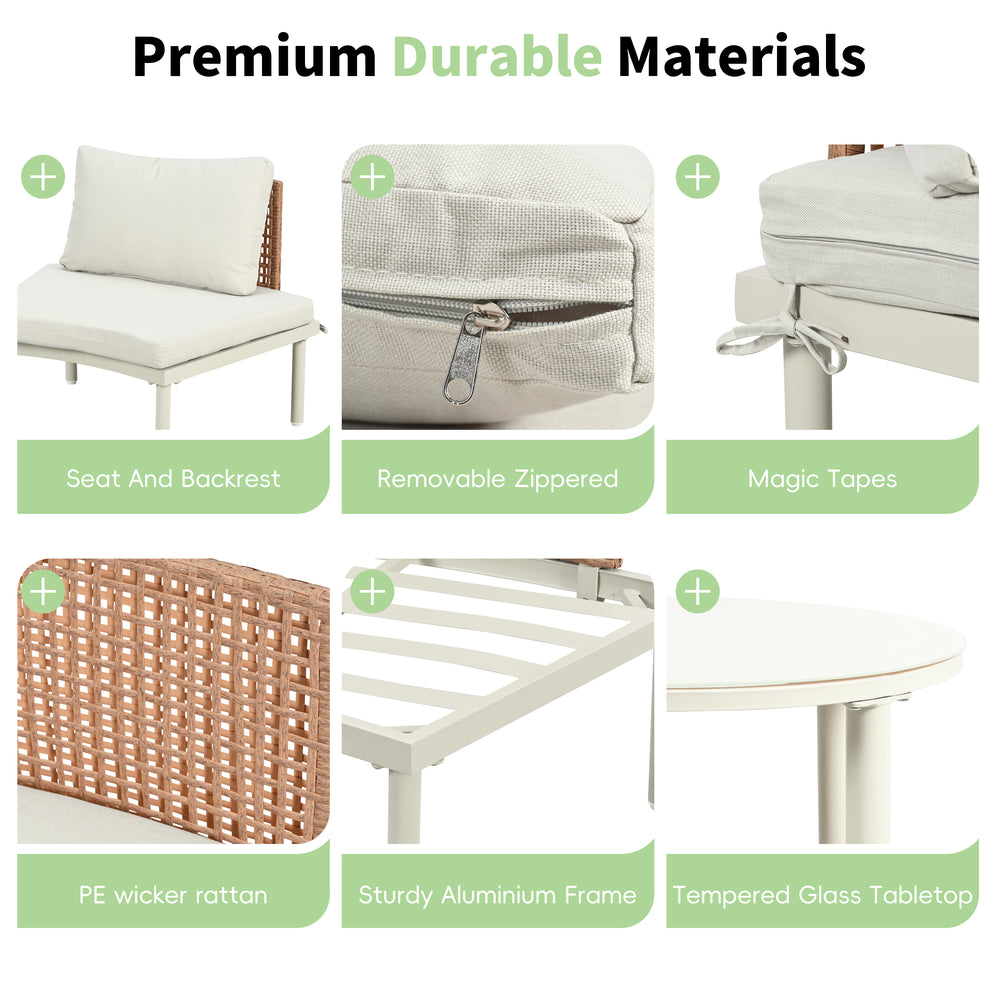 - Color Option: Elegant beige frame, cushions, and tabletop paired with brown rattan weave.