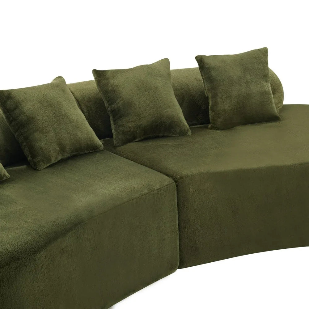Green Modular Velvet Curved 4-Seat Sofa