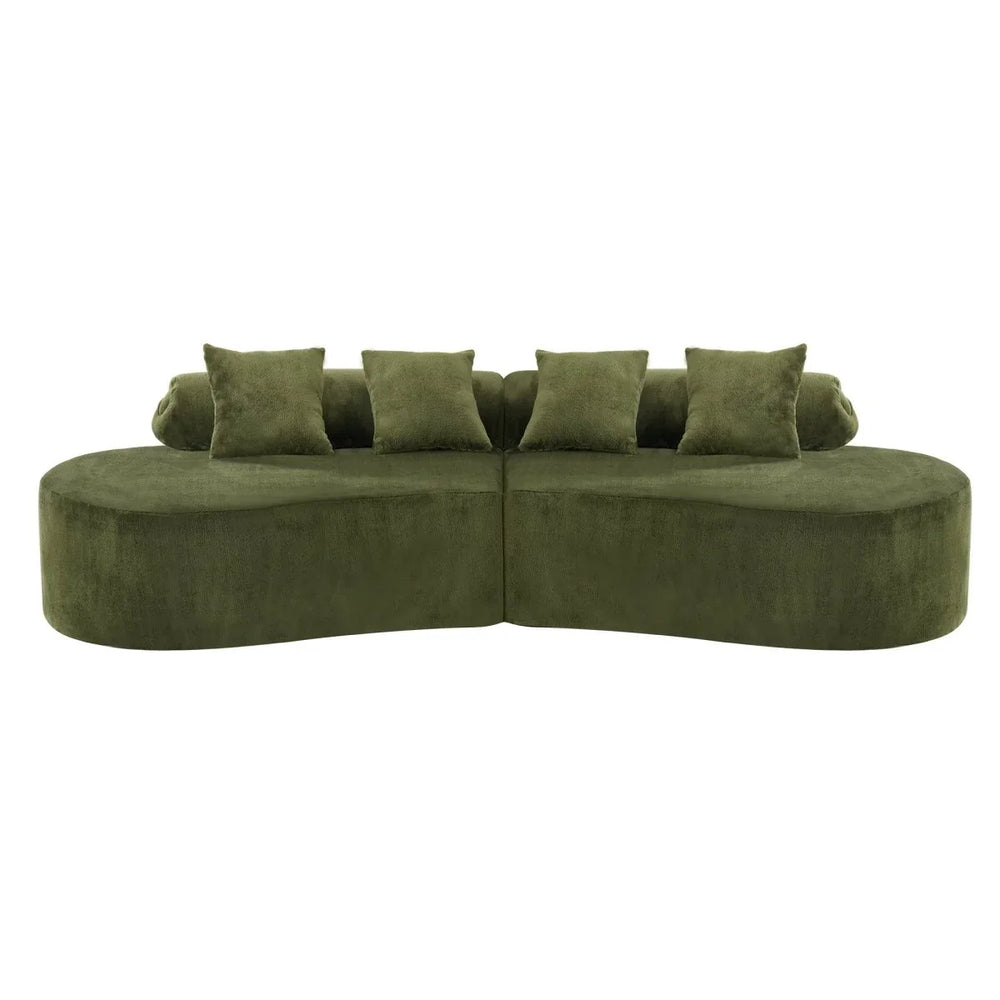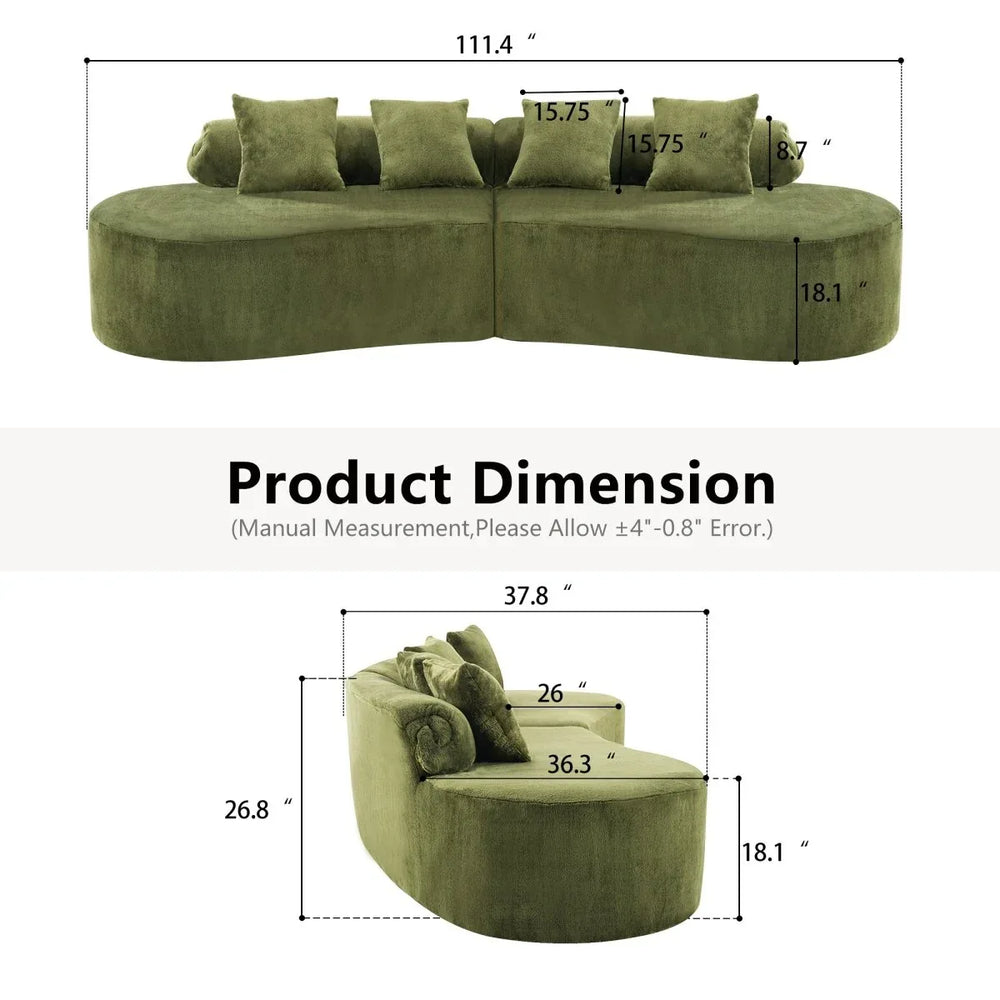 Elevate your living space with this modern and minimalist curved modular sofa, designed for ultimate comfort and style. Its high-density foam and spring-filled cushions provide medium-soft support that adapts to your body shape, while the plush green velvet upholstery offers a soft, skin-friendly surface. The ergonomic curved design reduces fatigue, making it perfect for long conversations or relaxing with family and friends. Modular sections allow flexible assembly to fit various room layouts, giving you the freedom to customize your seating arrangement. With an assembled length of 111.4 inches and seating for up to four people, this sofa reshapes your primary living space with elegance and function. Refresh your home atmosphere and enjoy lasting comfort today.