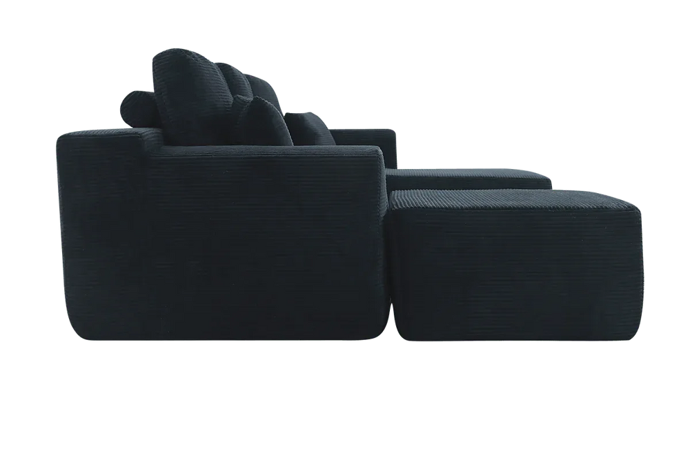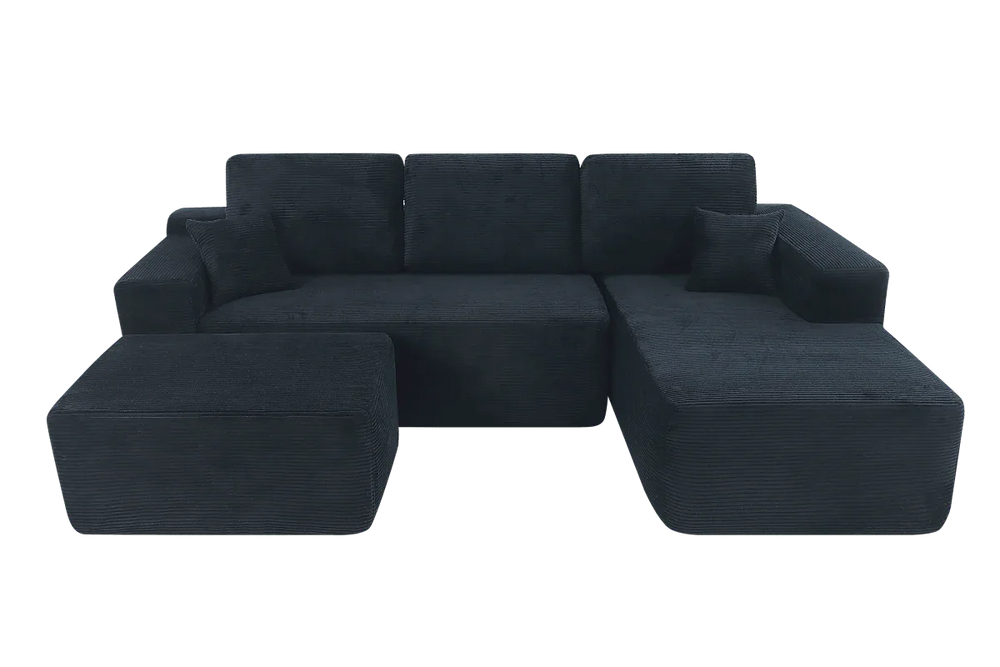 Transform your living space with this modern modular sectional sofa featuring a spacious U-shaped chaise for ultimate relaxation. Upholstered in plush corduroy fabric, this deep-seat couch offers exceptional softness and warmth, making it perfect for lounging in your living room or bedroom. Designed with high-resilience foam cushions and spring pack support, it contours to your body for lasting comfort that exceeds traditional sofas. The sleek black fabric and clean lines add a sophisticated touch that complements any décor. Plus, enjoy hassle-free setup with no assembly required—simply unwrap and settle in. Measuring 105.7 inches long by 68.9 inches wide and standing 31.9 inches high, this 3-seat sectional provides ample space for family and guests. Elevate your relaxation today with this stylish and comfortable sectional sofa.